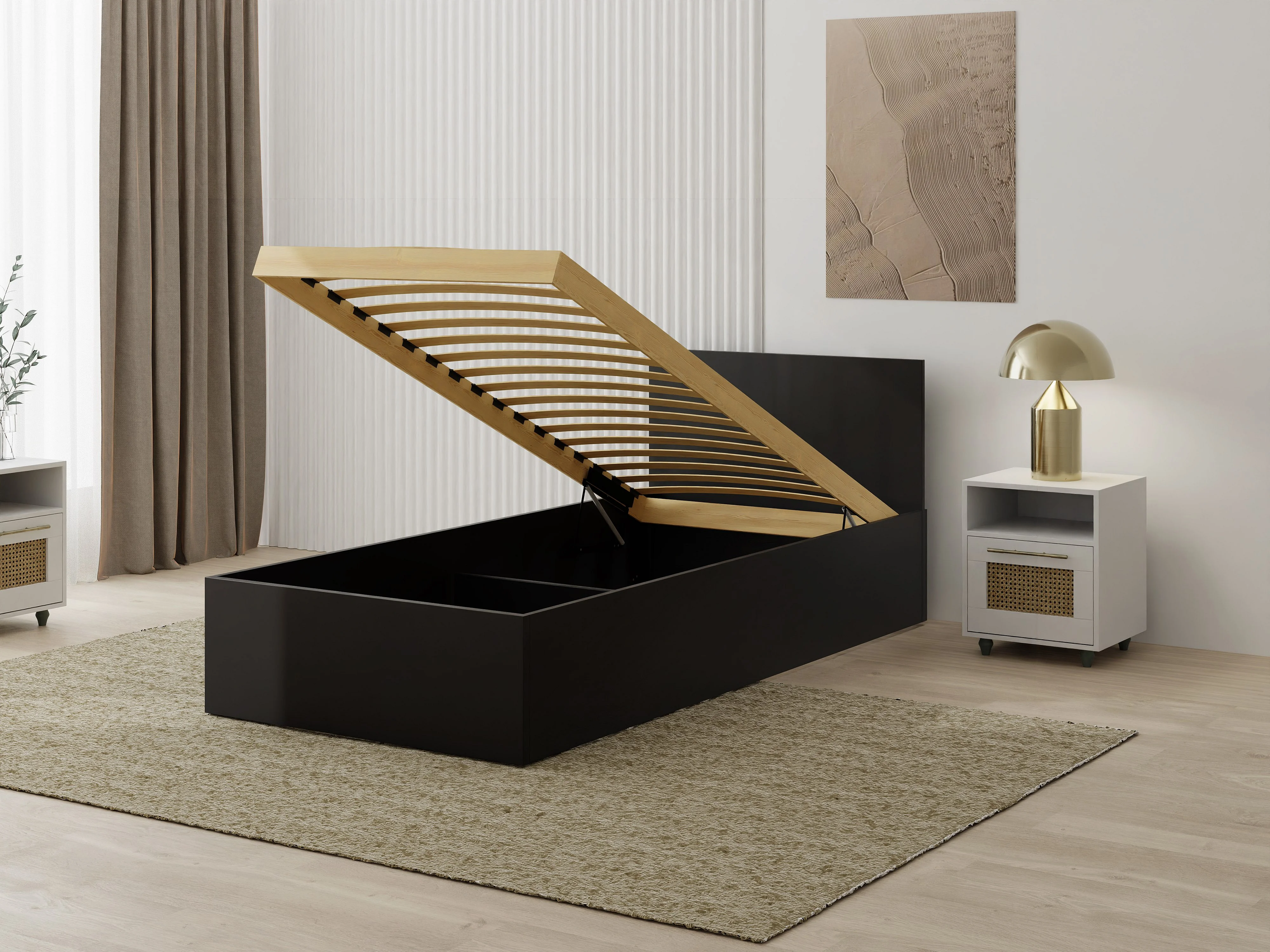 Houten bed met matras AVI 90×200 cm in zwarte kleur
