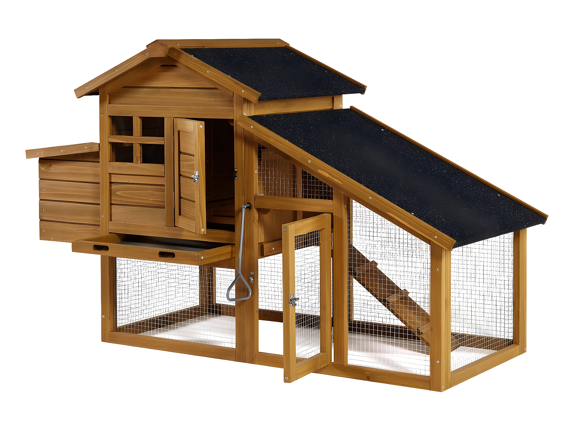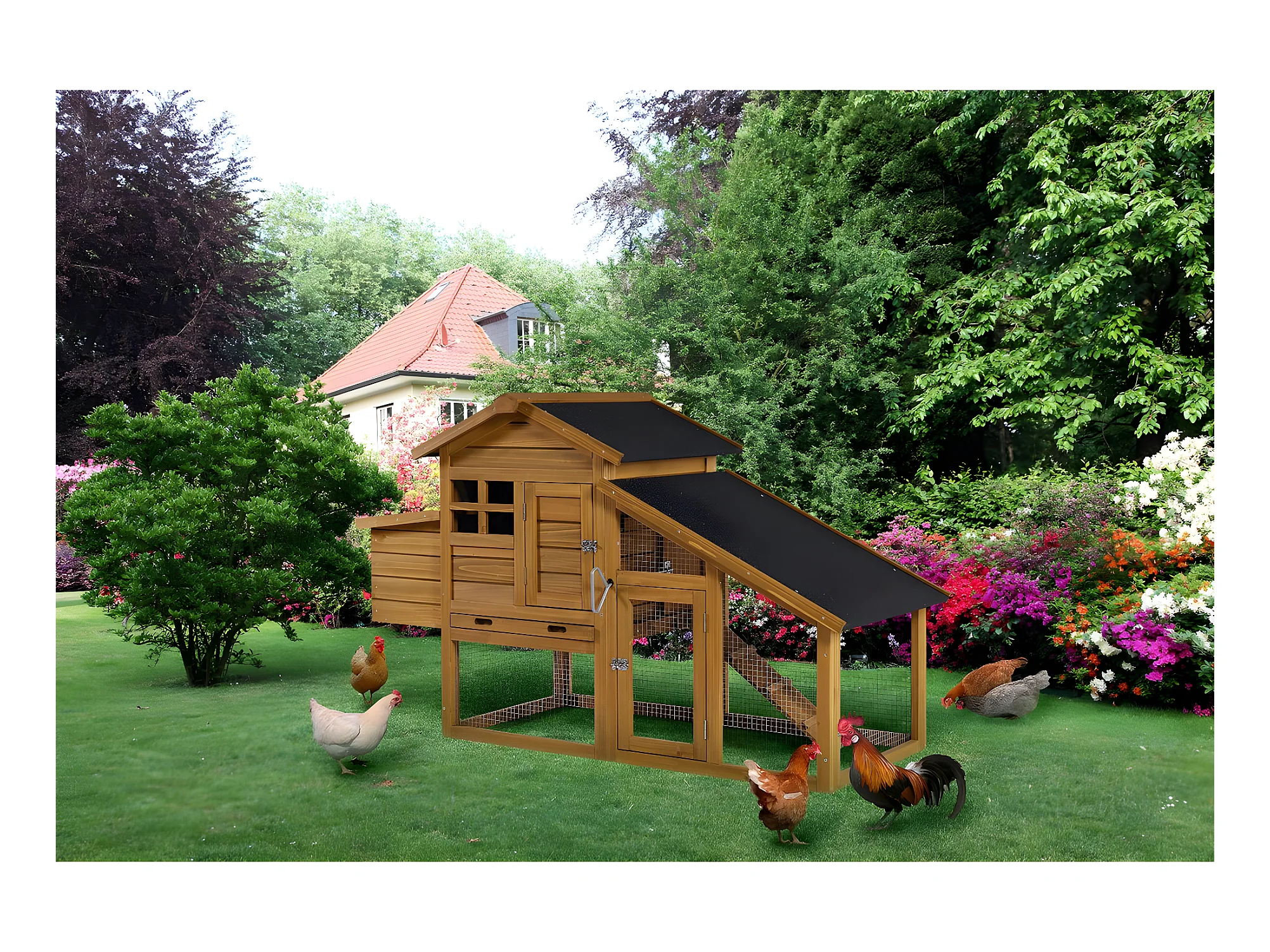 Houten kippenhok "Clochette" met legnest - Bruin, om uw kippen veilig en comfortabel te houden