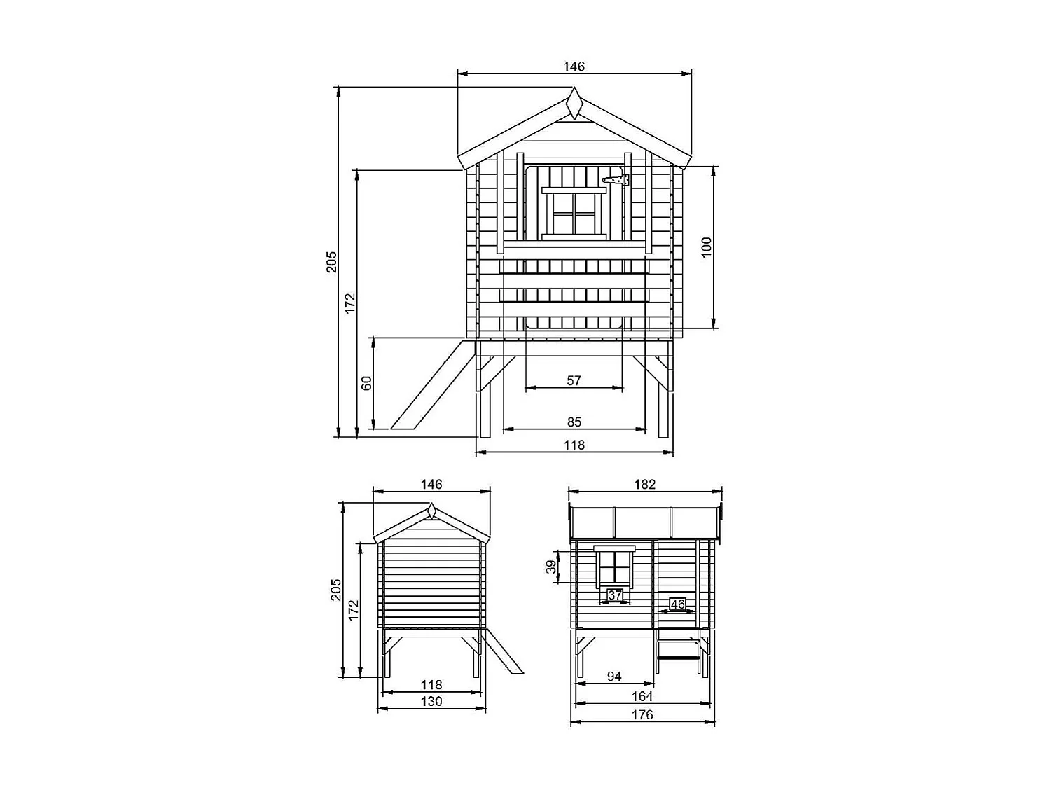 Houten huis voor kinderen - 182x146xH205cm / 1.1m² - M501B