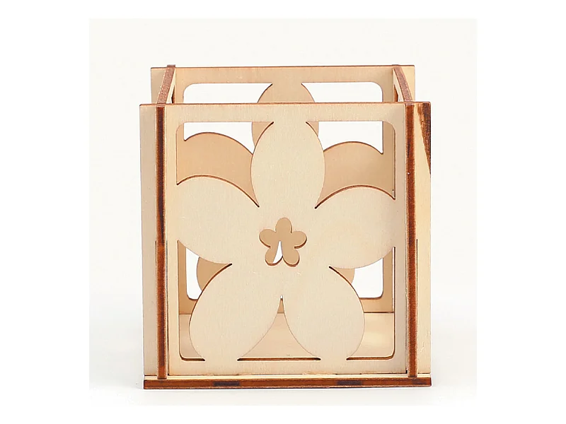 Houten theelichthouder om te decoreren - Bloemen - 10 x 10 x 6 cm