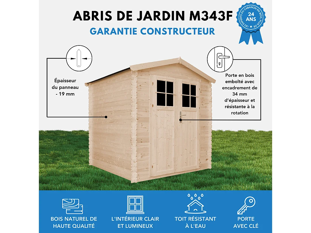 Houten tuinschuurtje zonder vloer met hoogwaardige afsluitbare deur - 3.53 m² - M343F