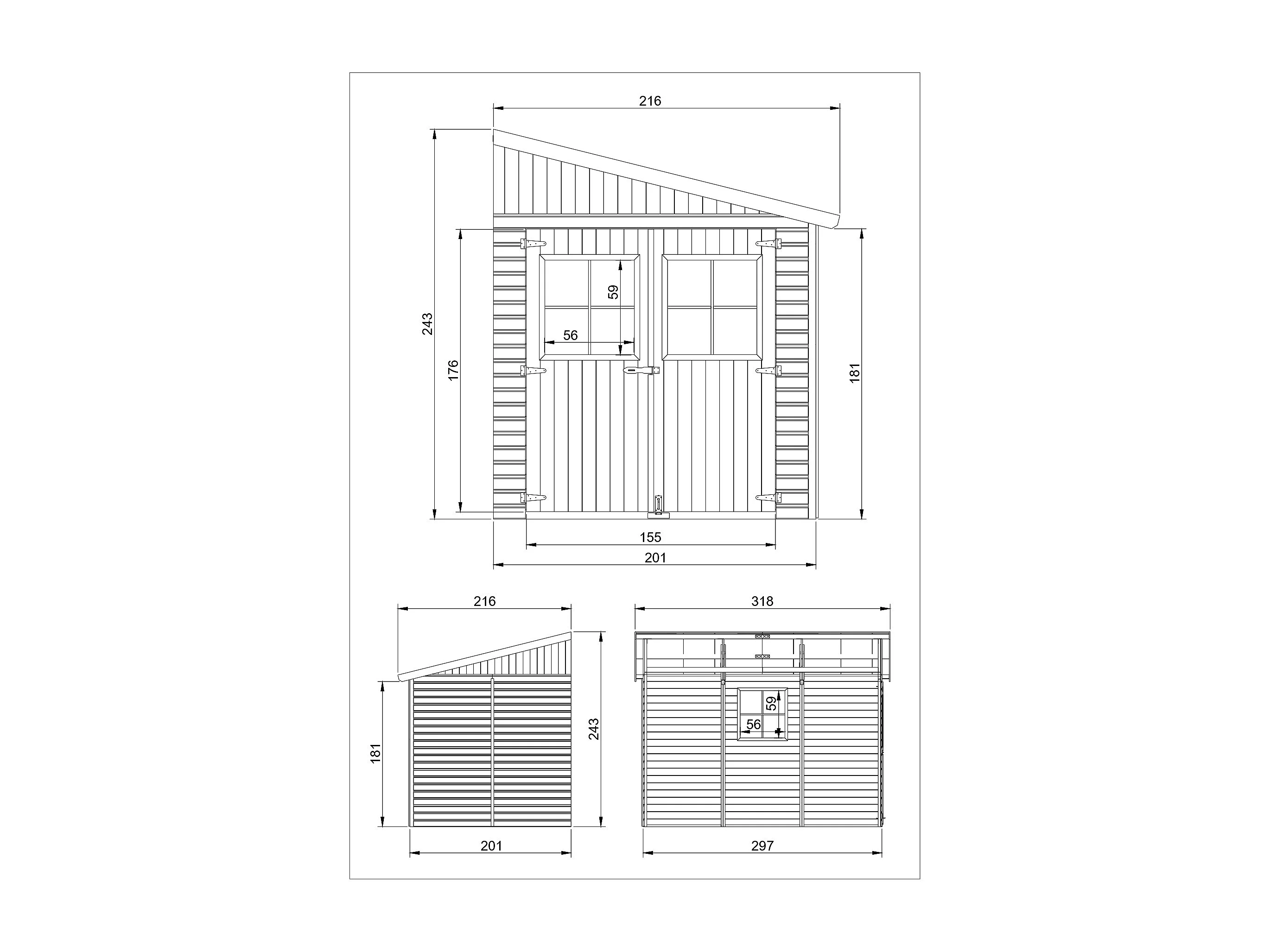 Houten tuinschuurtje met geimpregneerde vloer (3 wanden) - 6 m² - M339+M339G