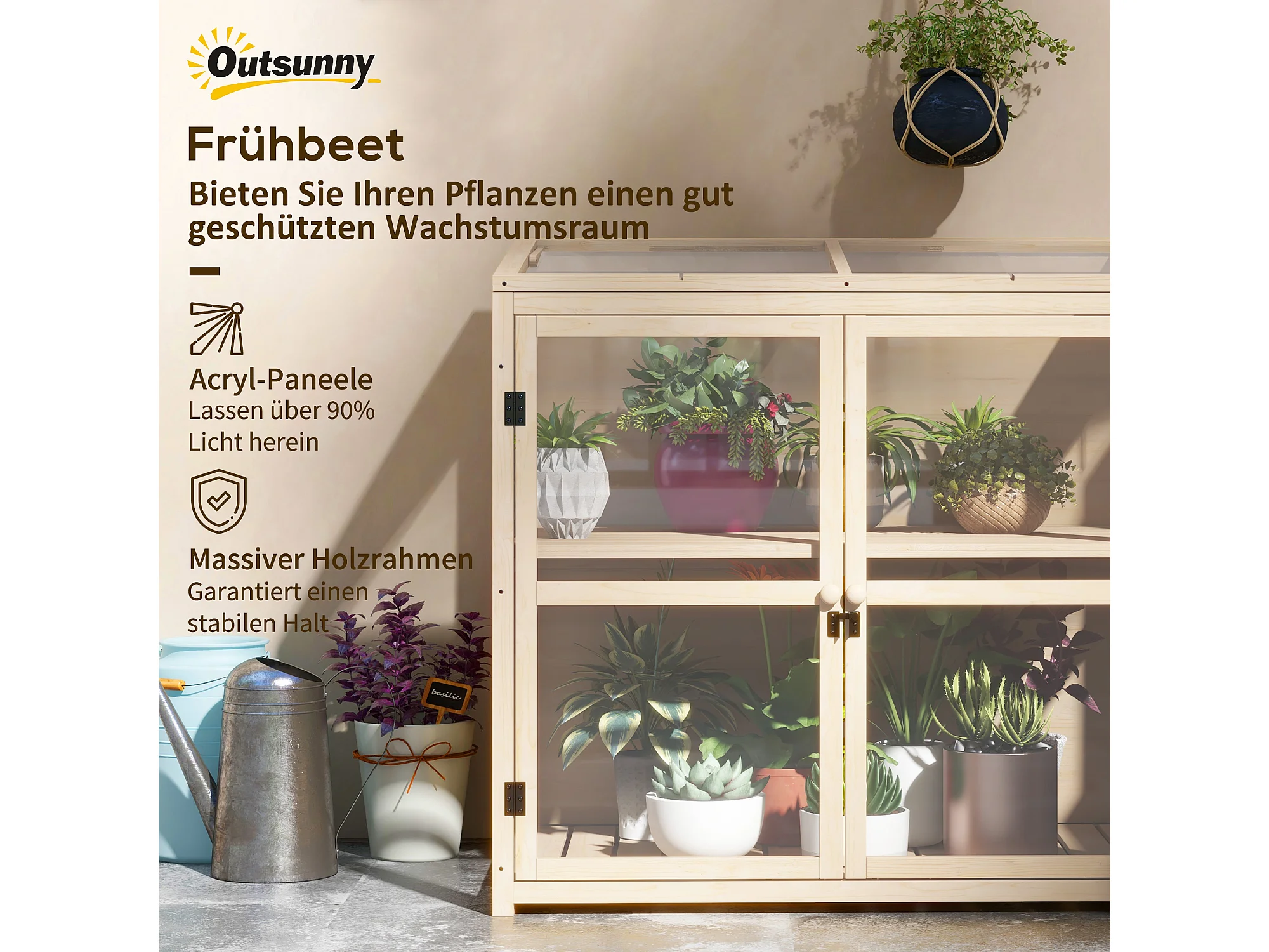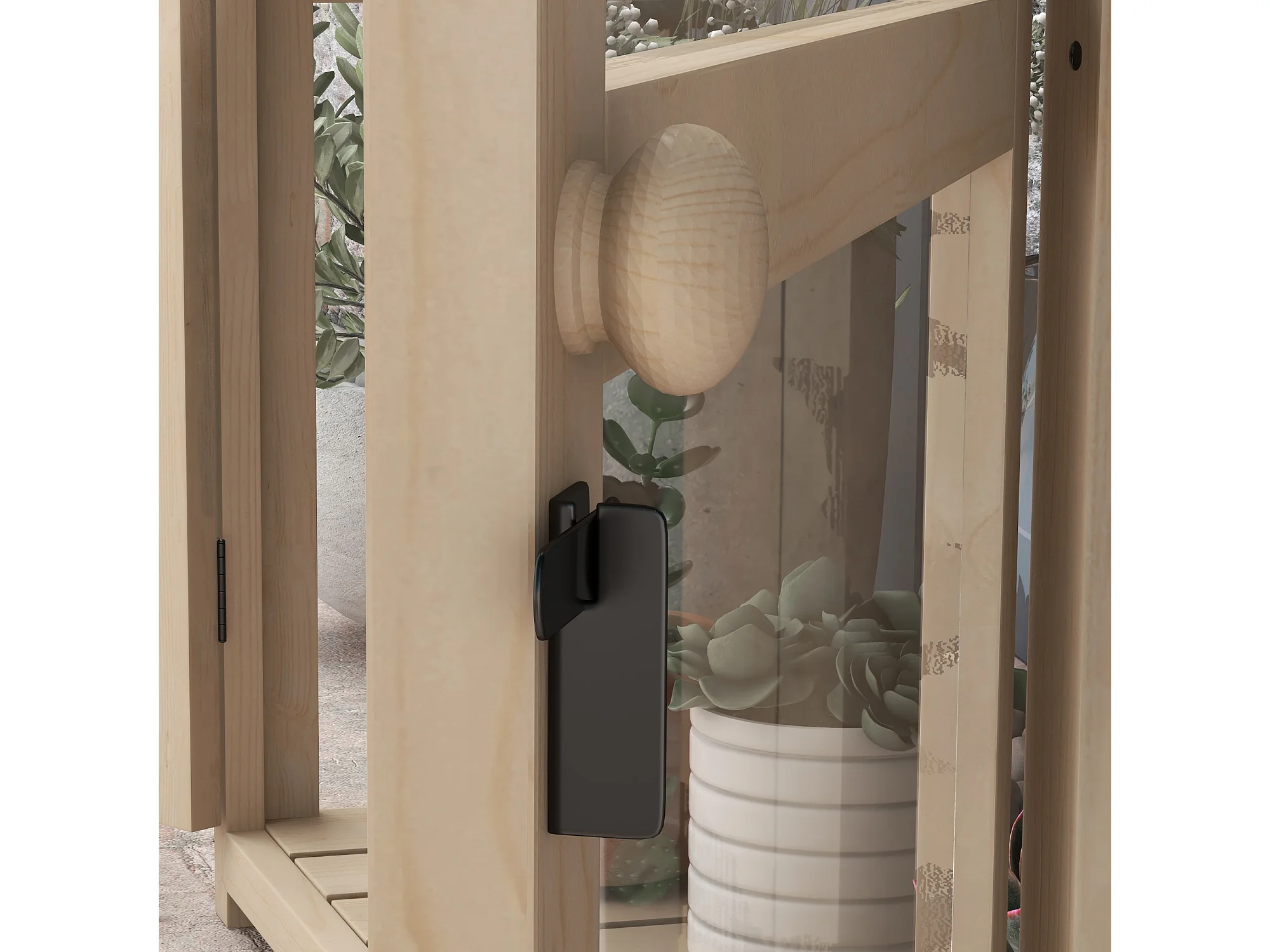 Houten tuinkas met dubbele deur en dakraam, 2 verdiepingen, naturel (103x61x103 cm)