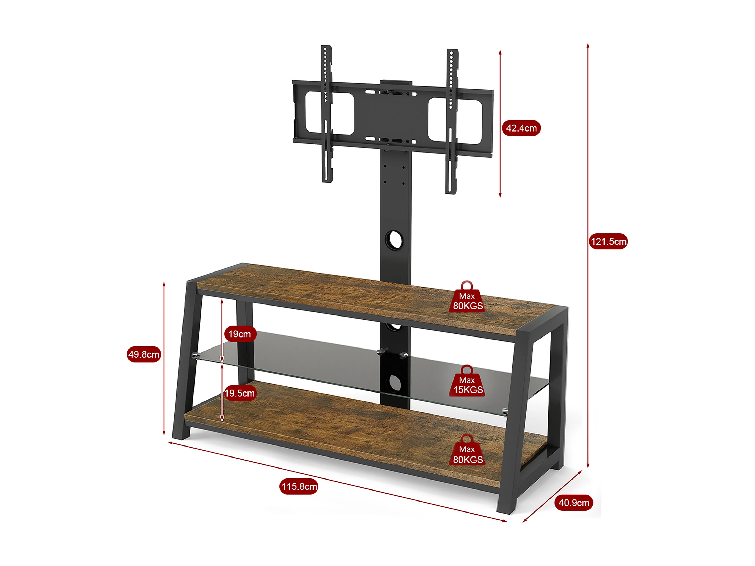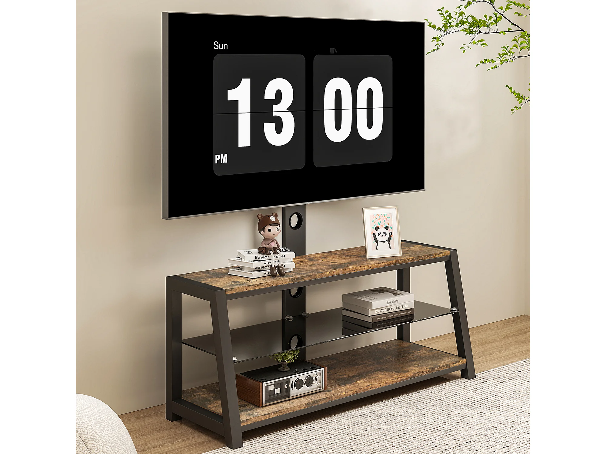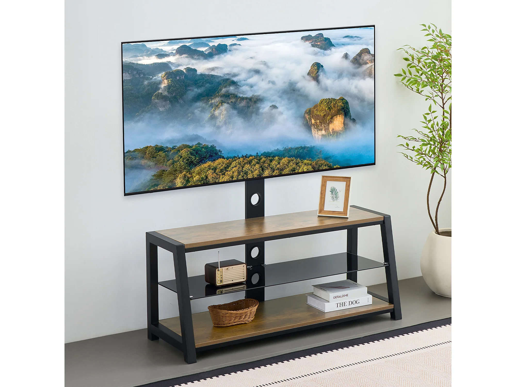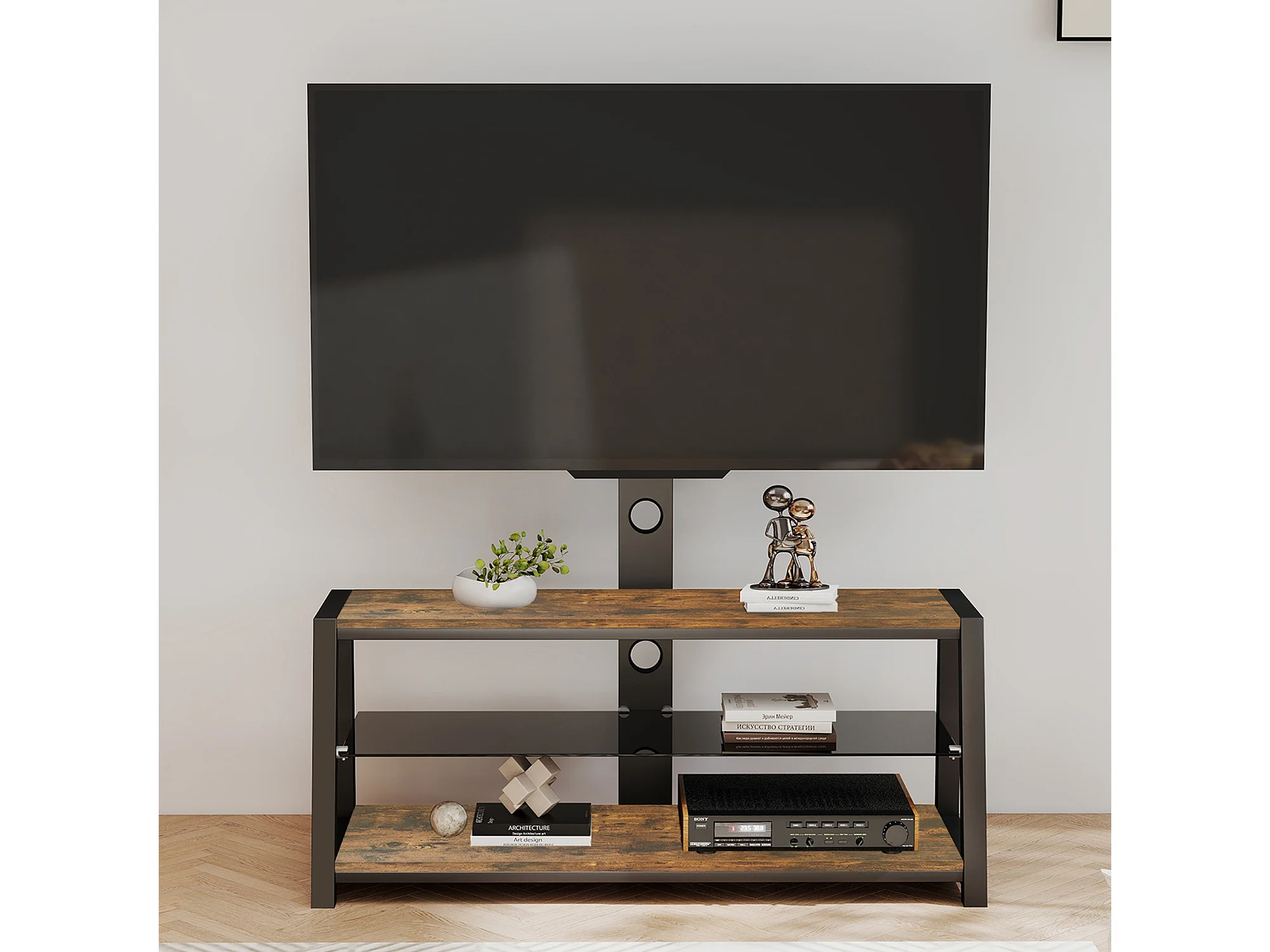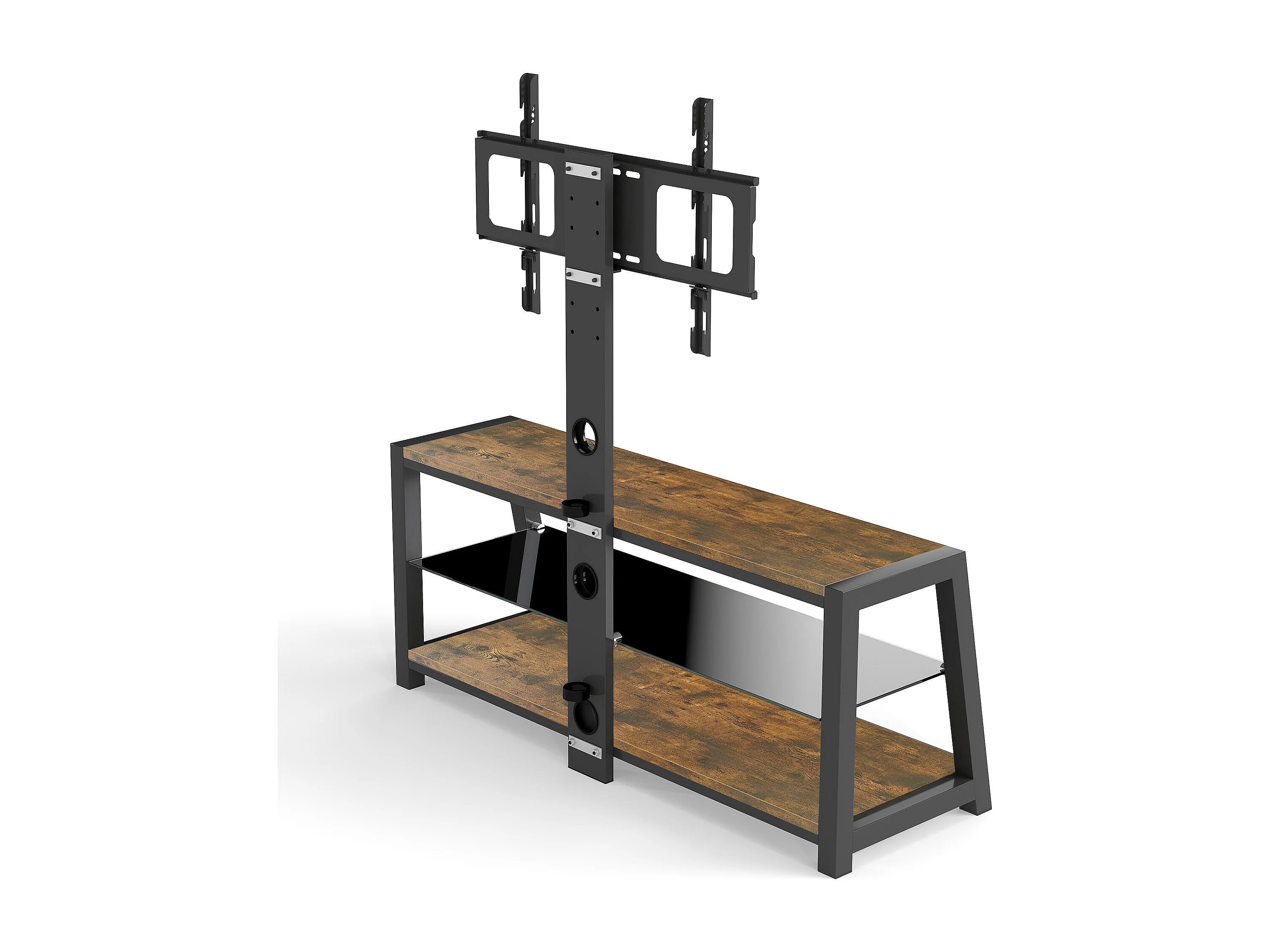 Houten tv-standaard met verstelbare hoogte - Bruin en zwart