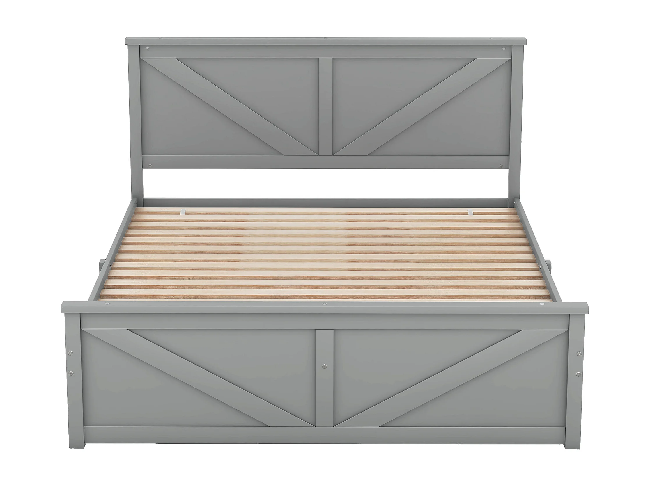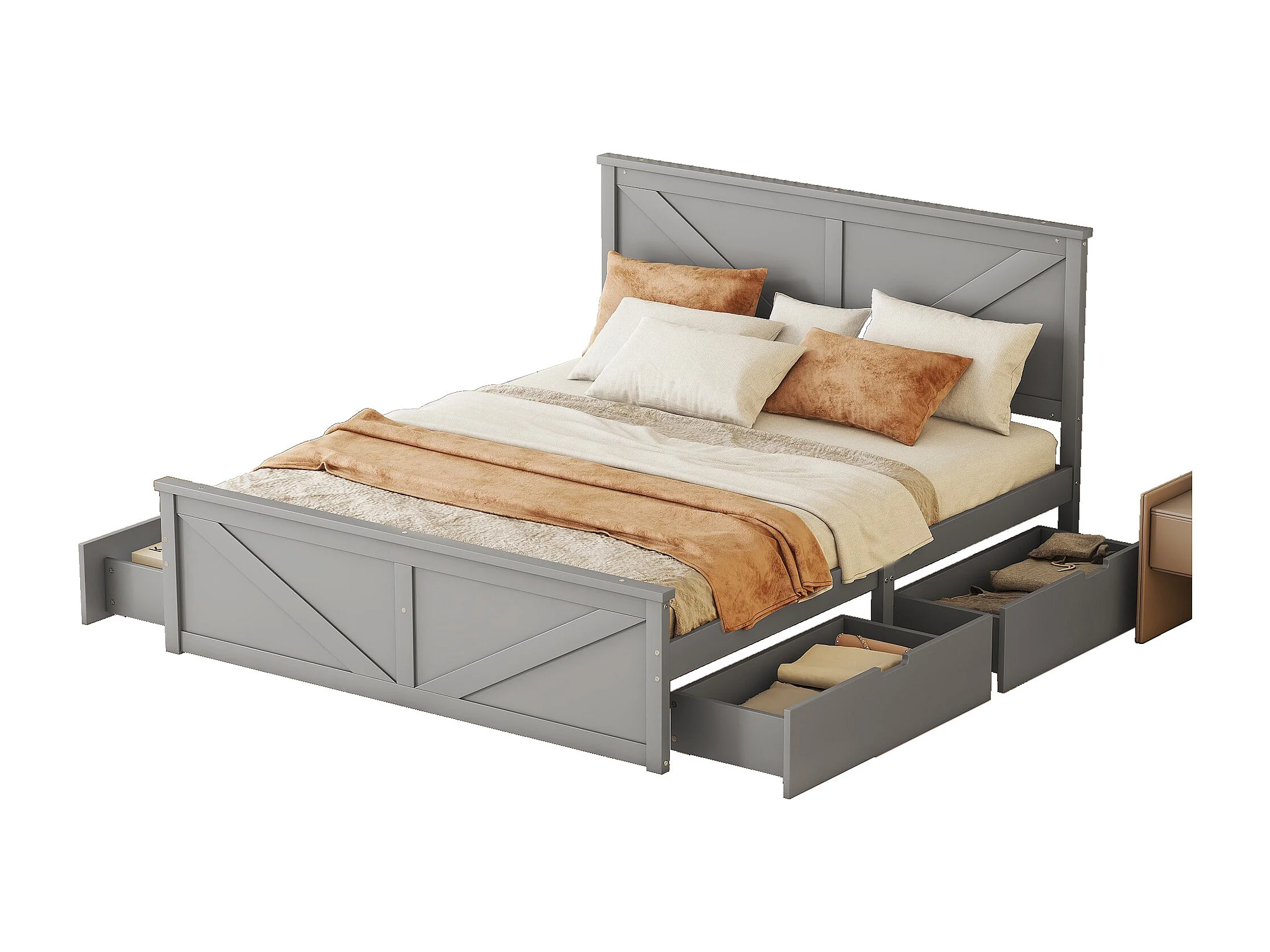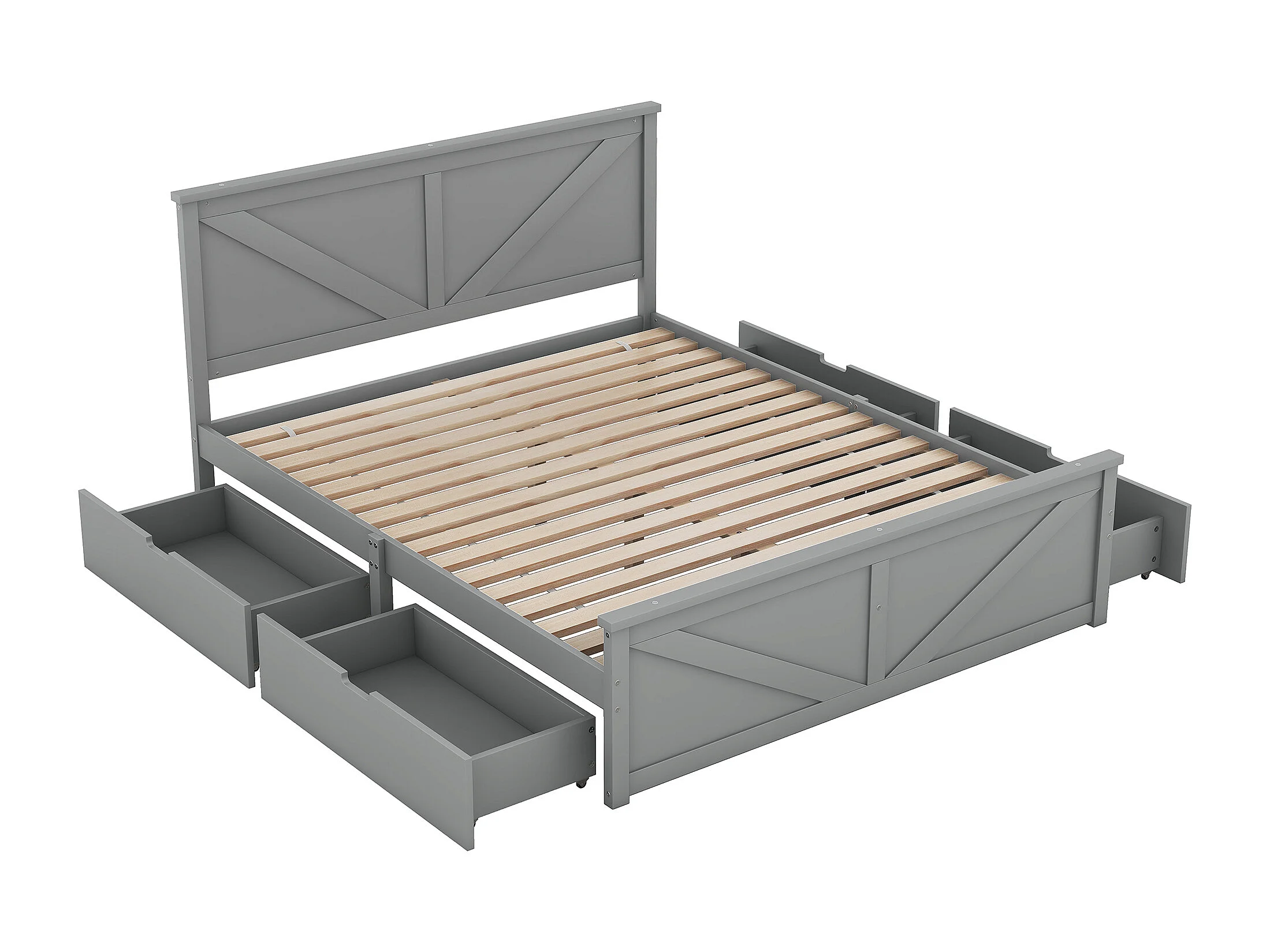 Houten tweepersoonsbed 160 x 200 cm met 4 laden, inclusief lattenbodem, Grijs
