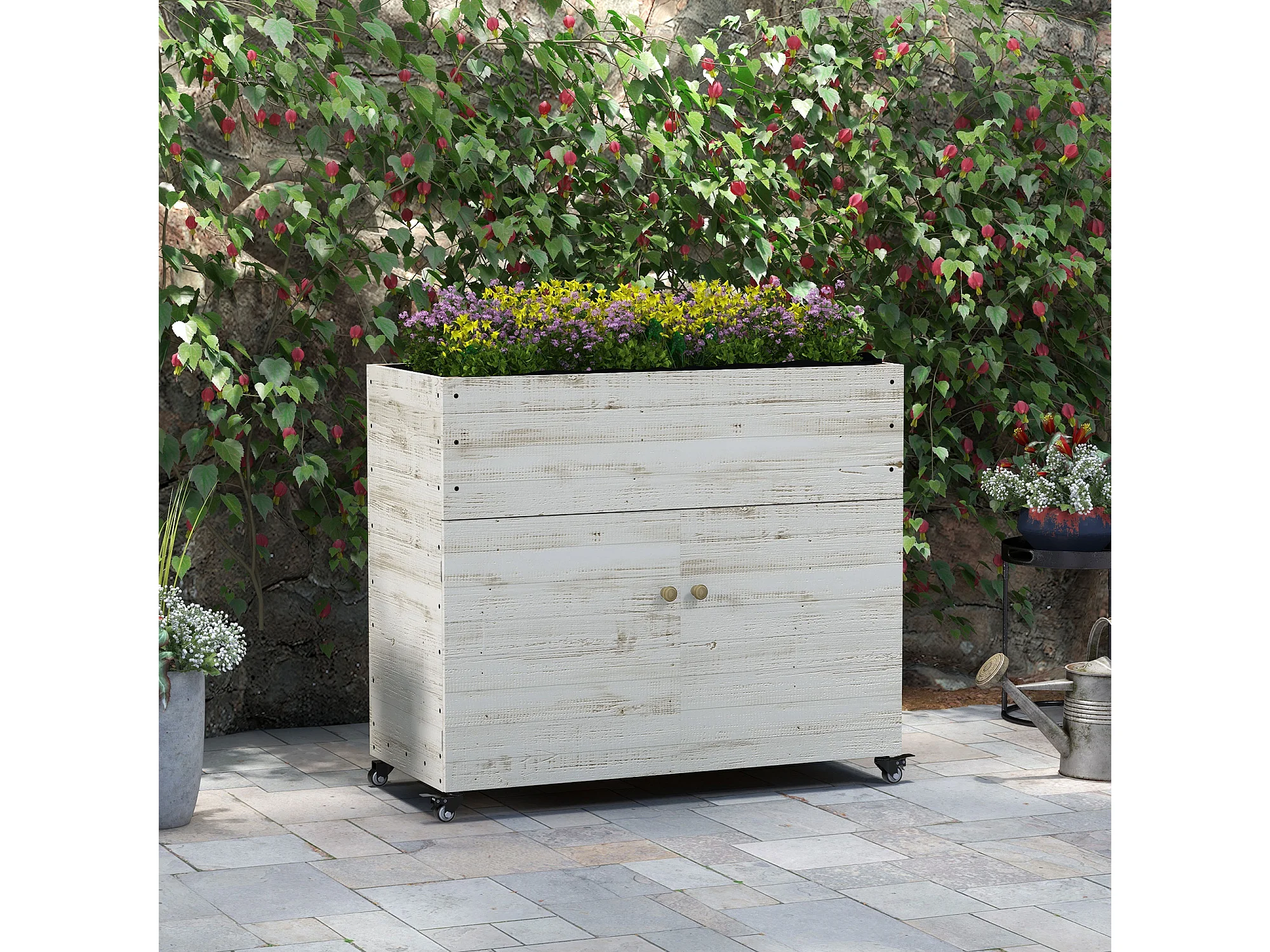Houten verhoogd bed met opbergruimte, 110x50x95 cm, wit