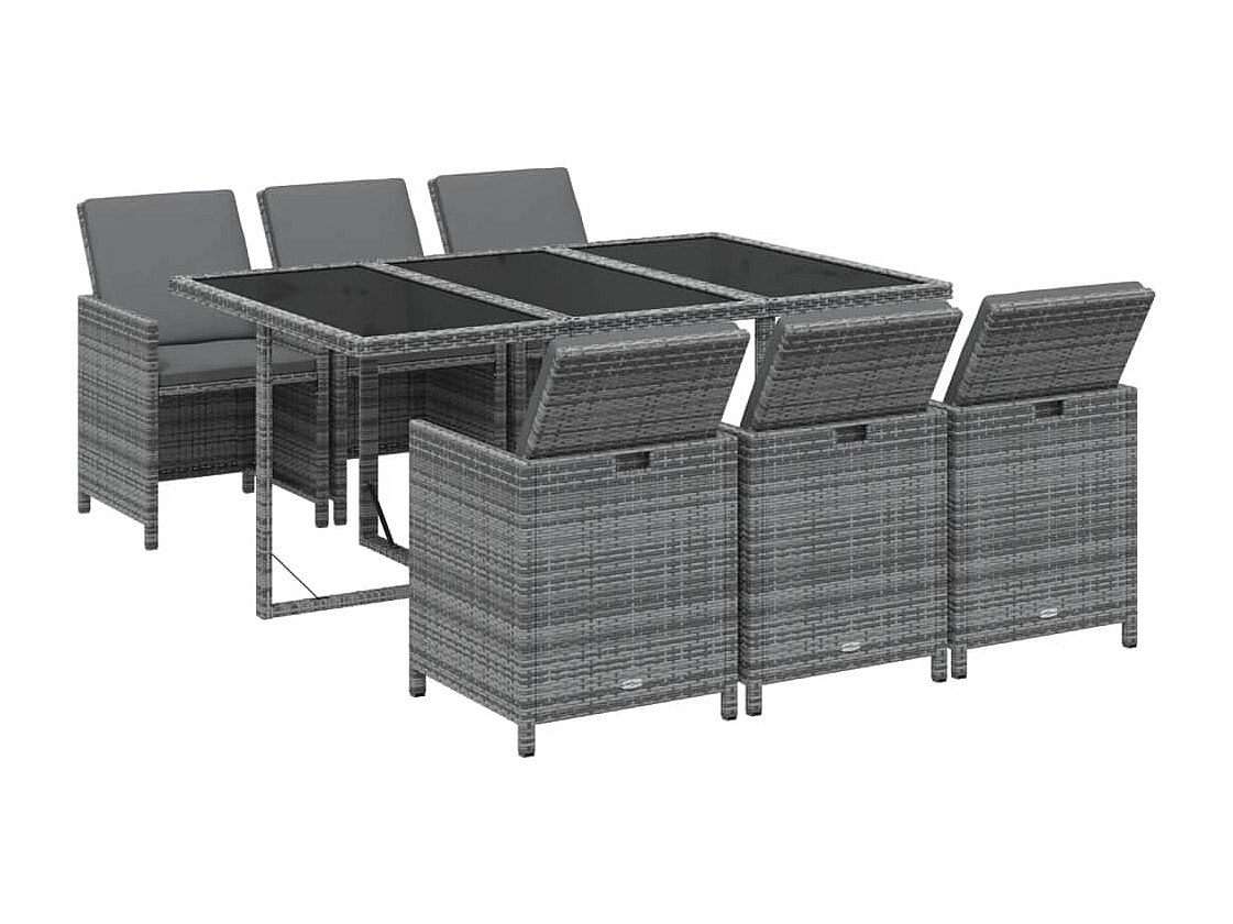 Tijn 7-delige Tuinset met kussens poly rattan grijs