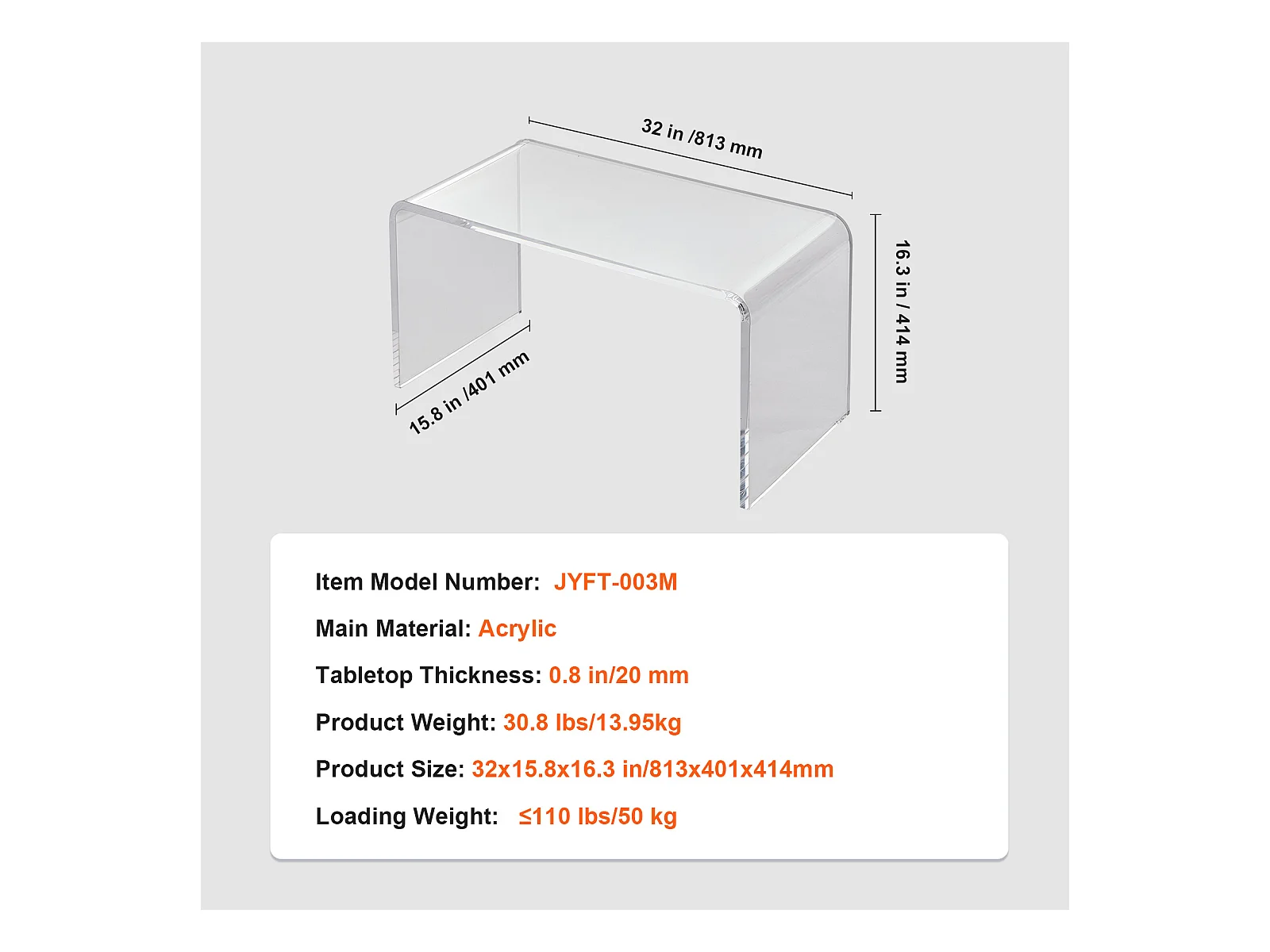 Hulptafel SucceBuy van Acryl in C-vorm SucceBuy Hulptafel Transparant Hoogte van 41CM
