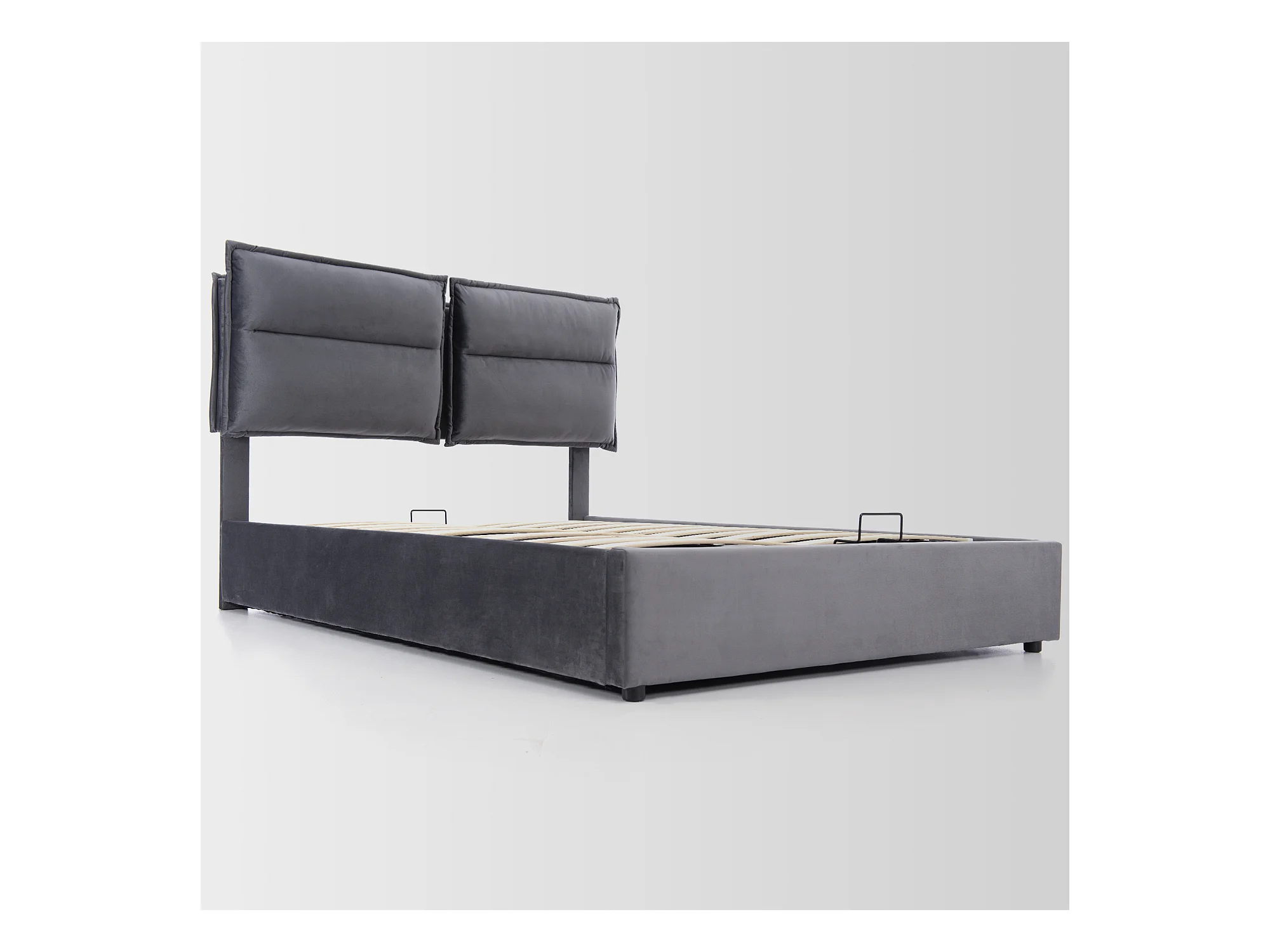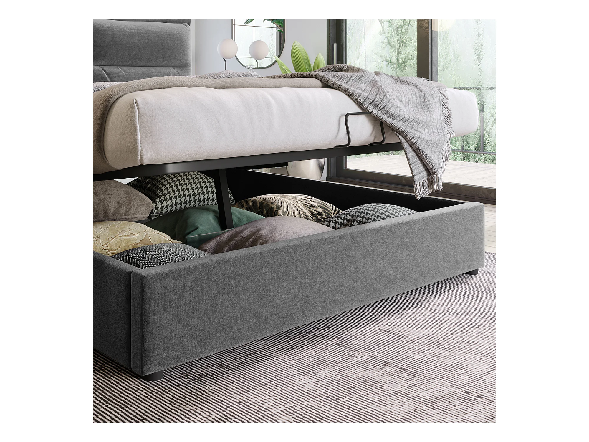 Gestoffeerd bed 140x200 cm met hoofdbord, lattenbodem en 4 lades, in grijs fluweel (140x200 cm)