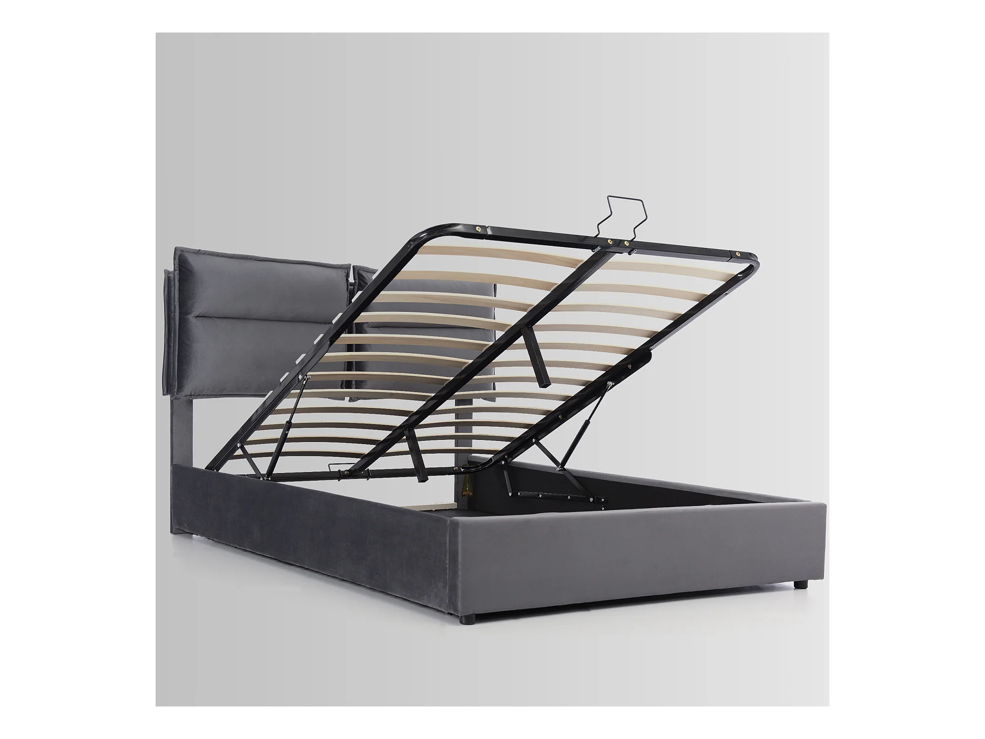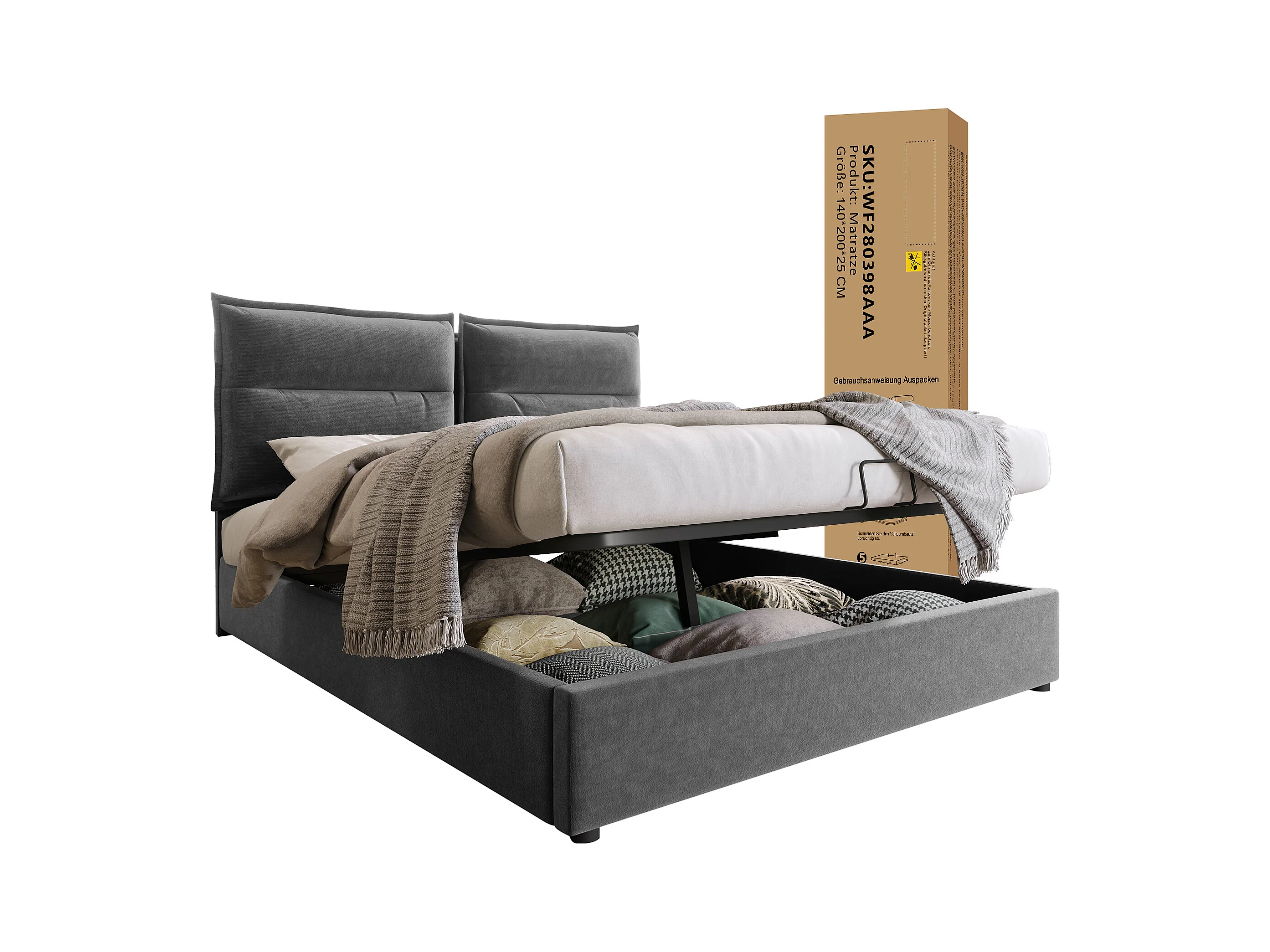 Bed met hydraulische opbergkast, 140x200 cm, drie laden, fluwelen stof, grijs (lengte 198 x breedte 31 x hoogte 15 cm)