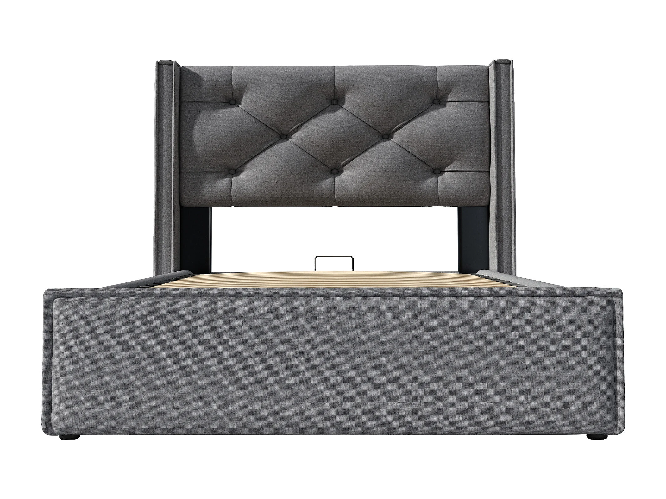 Hydraulisch Gepolsterd Bed Eenpersoons 90x200 Cm, Metaalframe Met Lattenbodem, Opbergruimte, Katoen Grijs, Met Matras