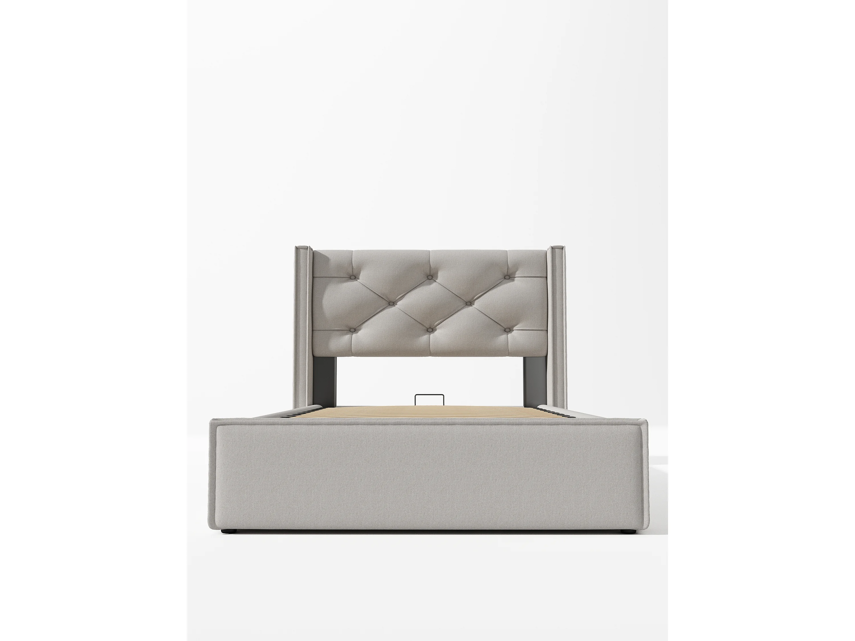 Hydraulisch Gepolsterd Bed Eenpersoons 90x200 Cm, Metaalframe Met Lattenbodem, Opbergruimte, Katoen Licht Grijs, Met Matras