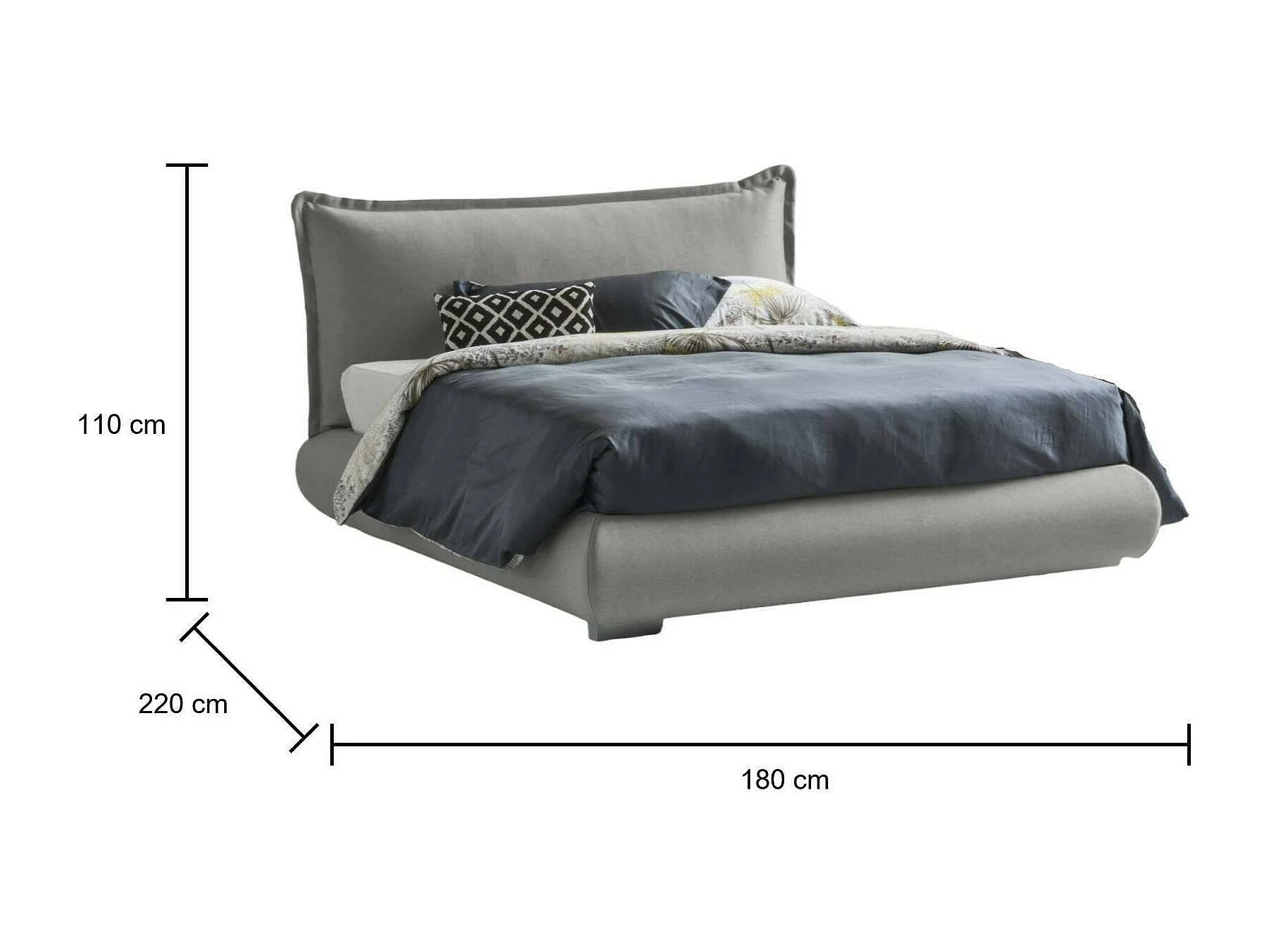 Talamo Italia Tweepersoonsbed Ilenia Grijs Afneembaar, Opslagruimte, Matrasmaat 160x190 cm Made in Italy