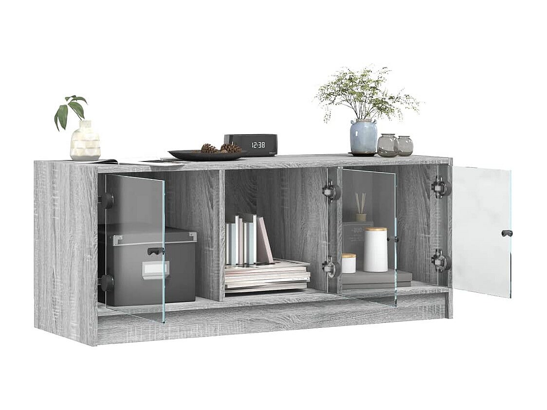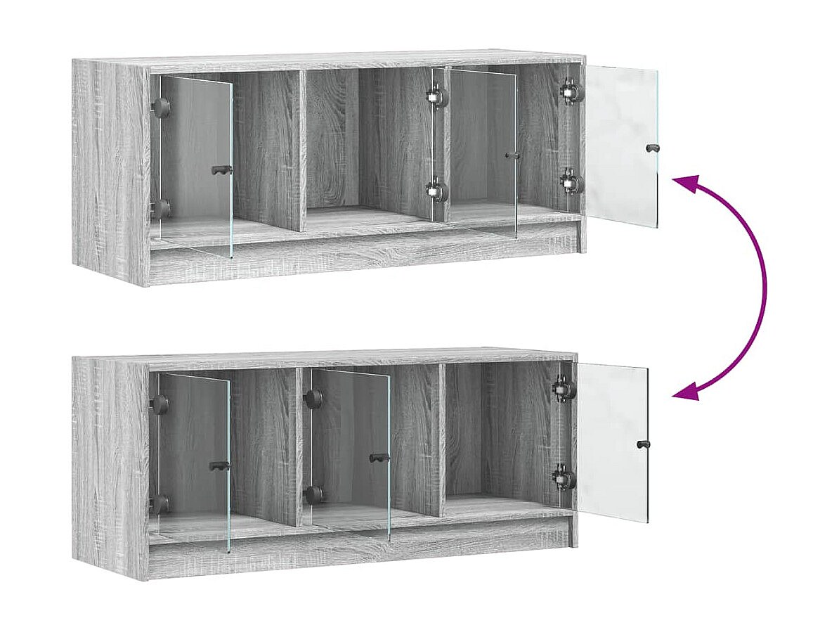 Ilgar Tv-meubel met glazen deuren 102x37x42 cm grijs sonoma eiken