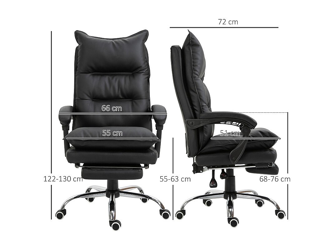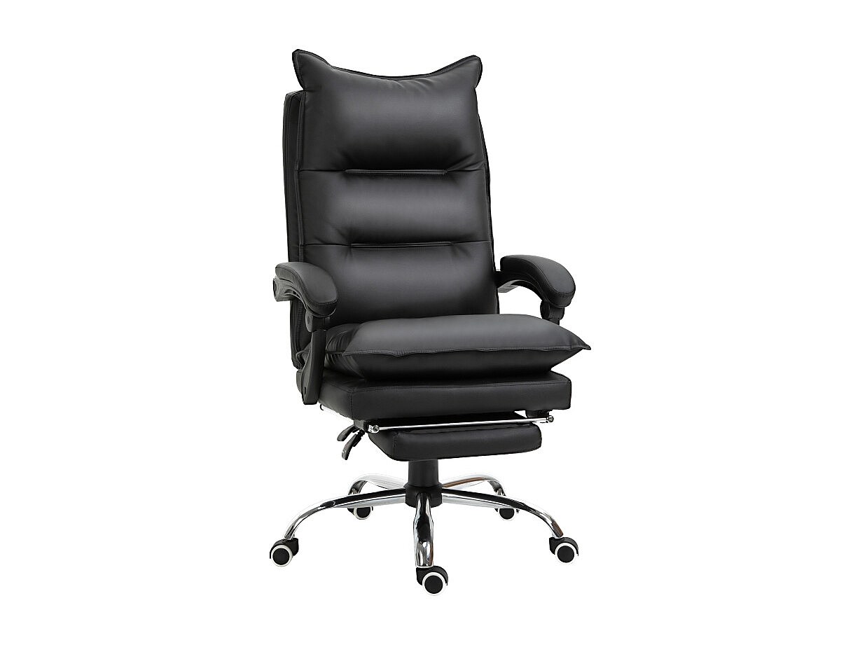 In hoogte verstelbare draaibare bureaustoel met voetenbankje, zwarte kunstlederen bekleding, comfortabel om op te werken