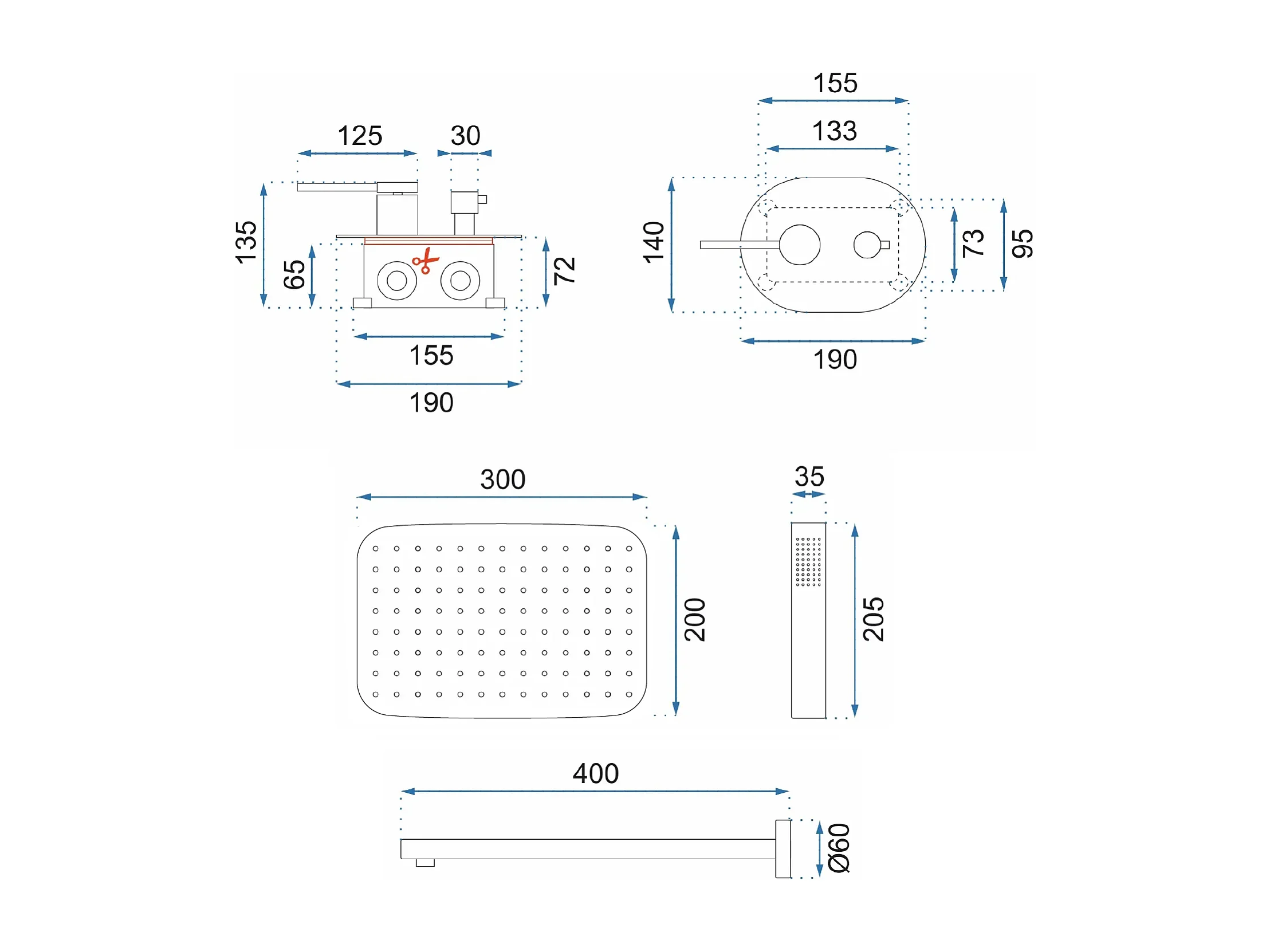 Inbouw Regendoucheset Rea Dayton Thermostat Black
