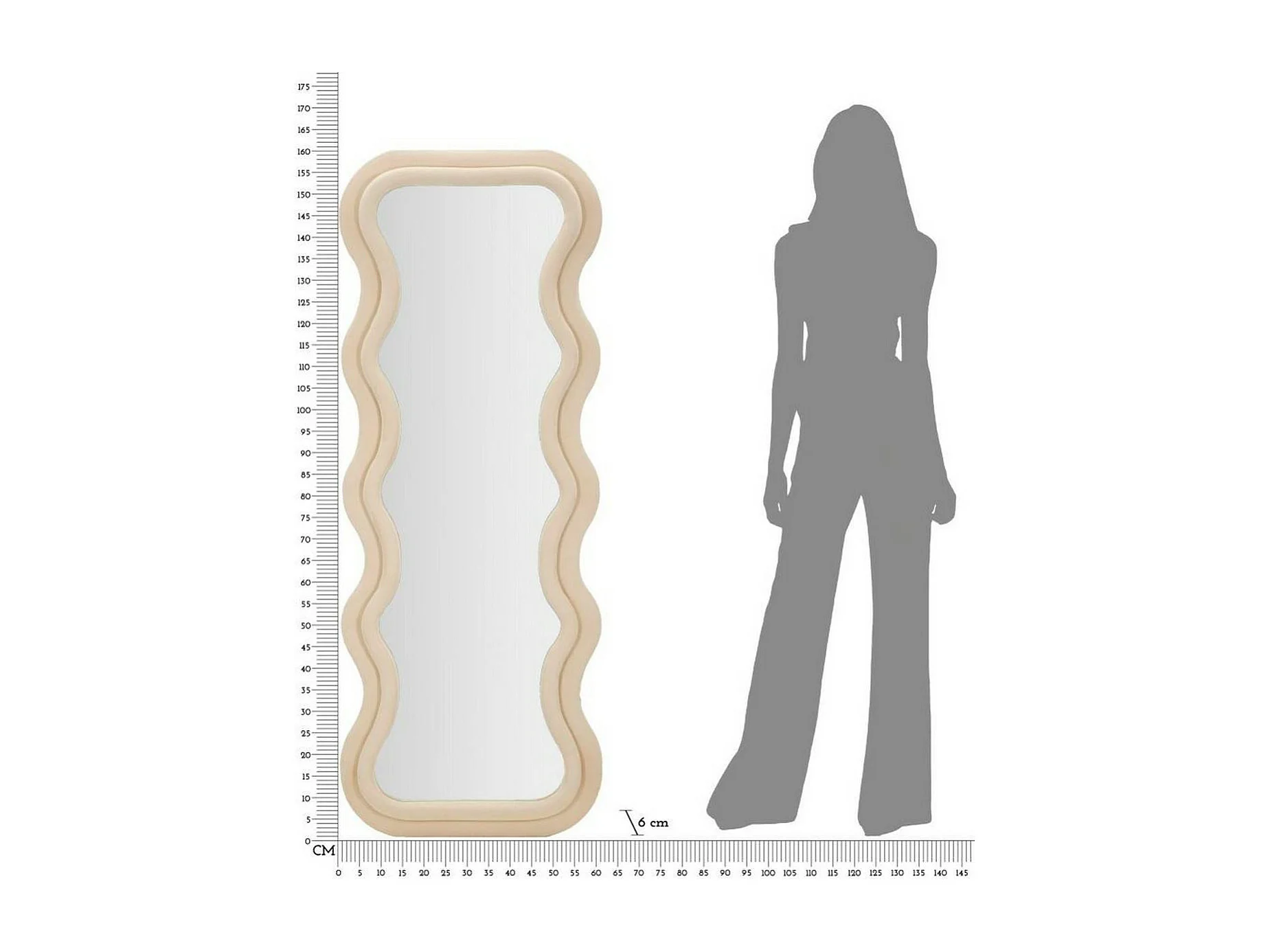 Inbusspiegel, Spiegel, Wandmeubelartikel, Decoratie met spiegel, 60x6 h160 cm, Crème