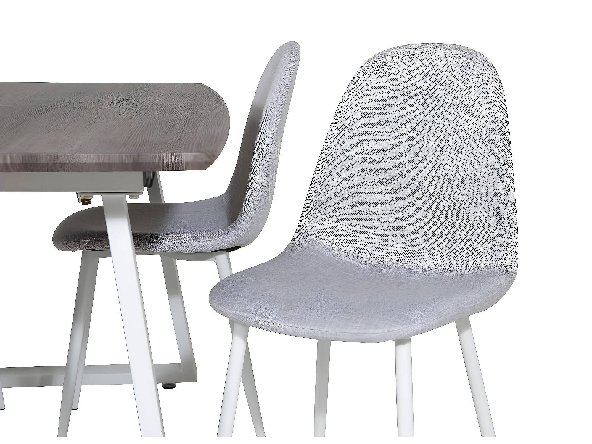IncaNAWH eethoek eetkamertafel uitschuifbare tafel lengte cm 160 / 200 el hout decor grijs en 4 Polar eetkamerstal lichtgrijs, wit.