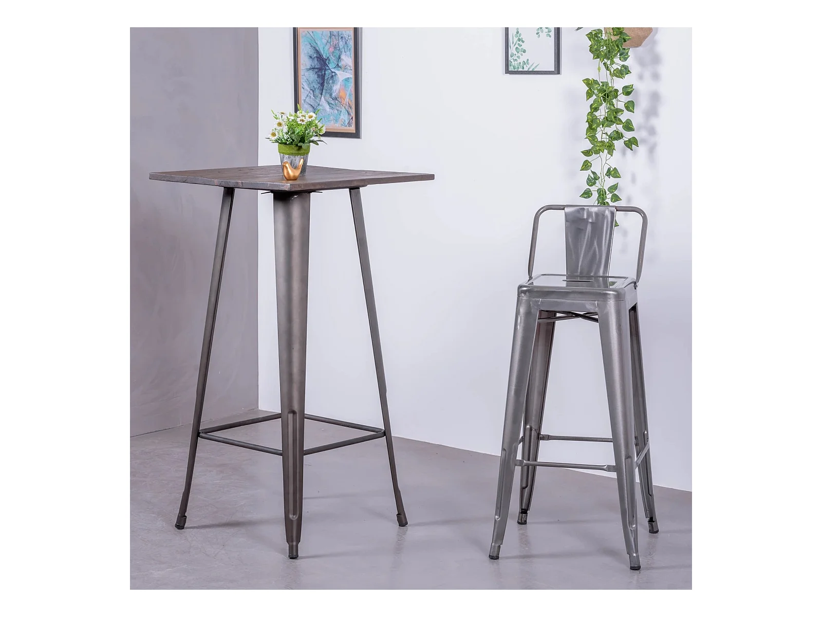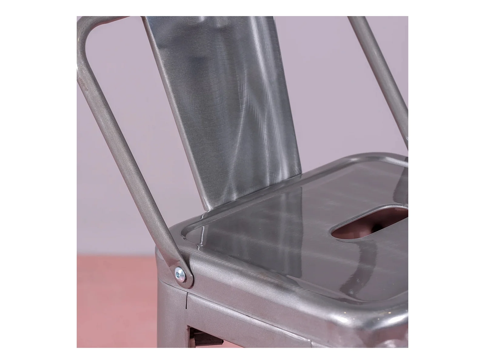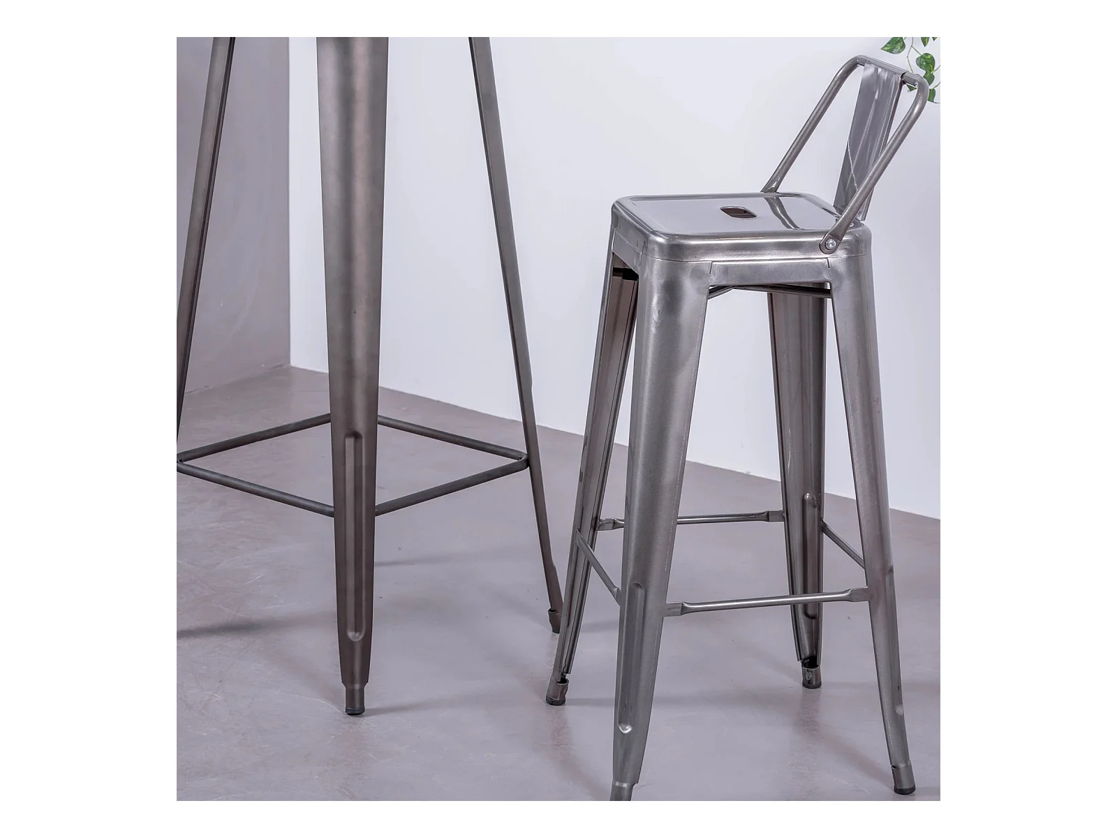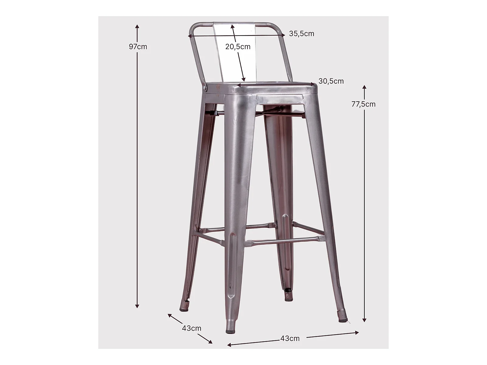 Industriële gemetalliseerde stalen kruk met lage rugleuning (76cm) - Bistro - Metaal