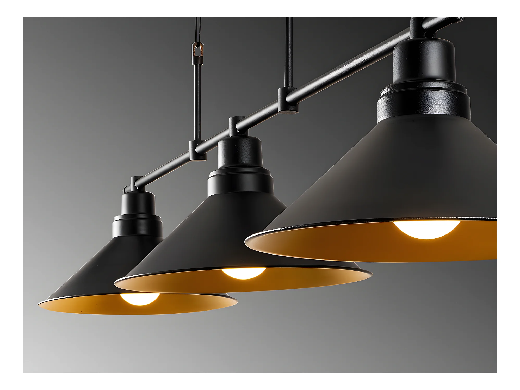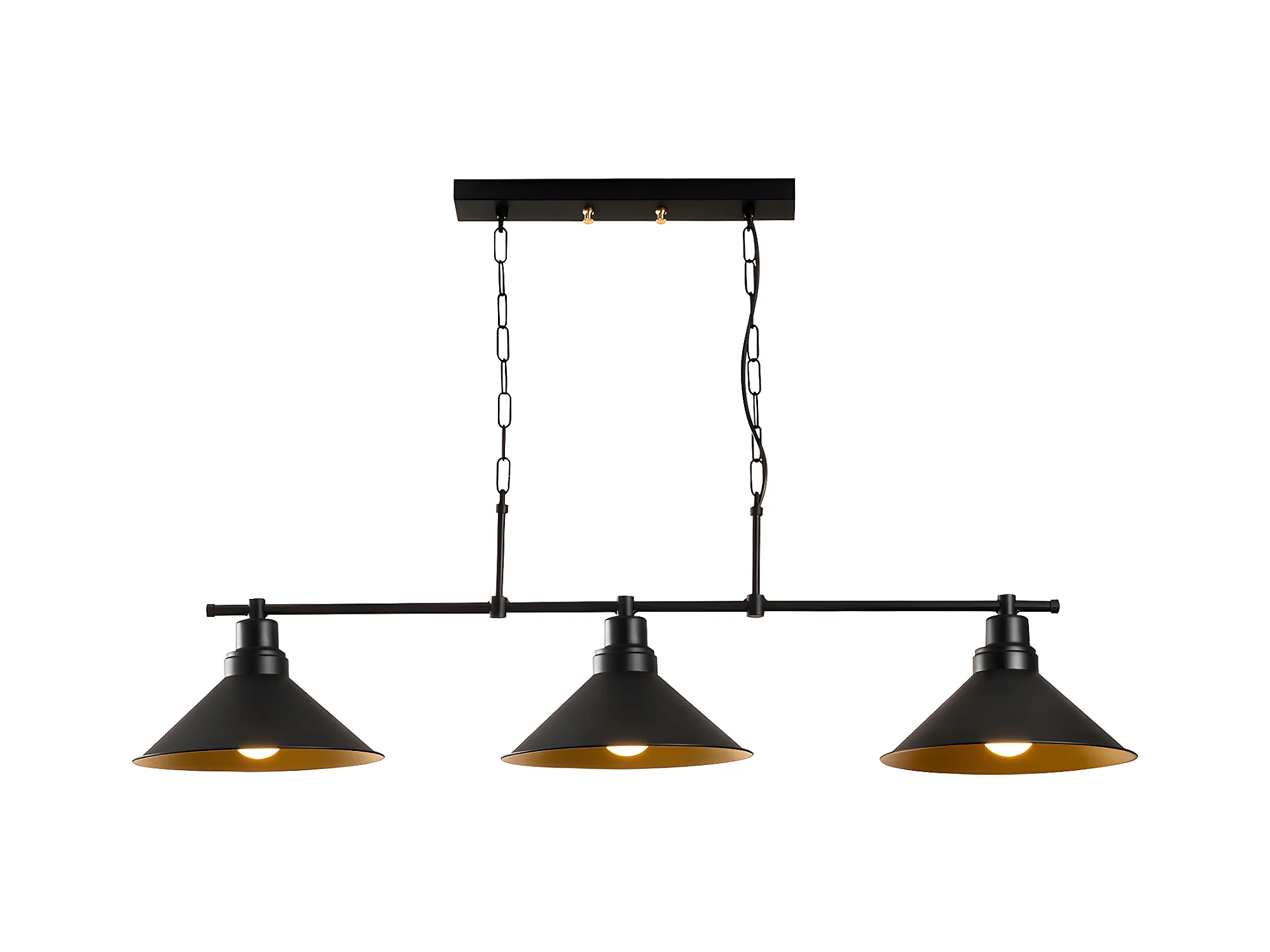 Industriële metalen hanglamp SIVANI - 3 kappen - B108 x H55 cm - Zwart