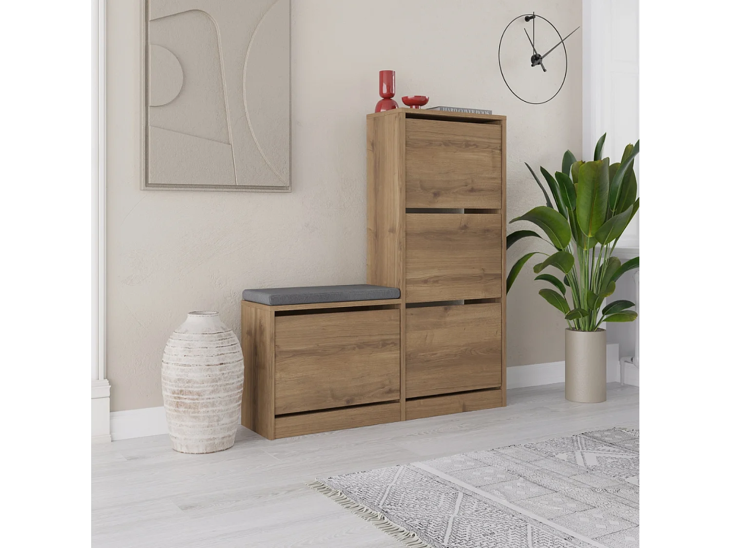 Industriële Schoenenkast met Zitplaats en 12 Planken - Eikenhout en Antraciet