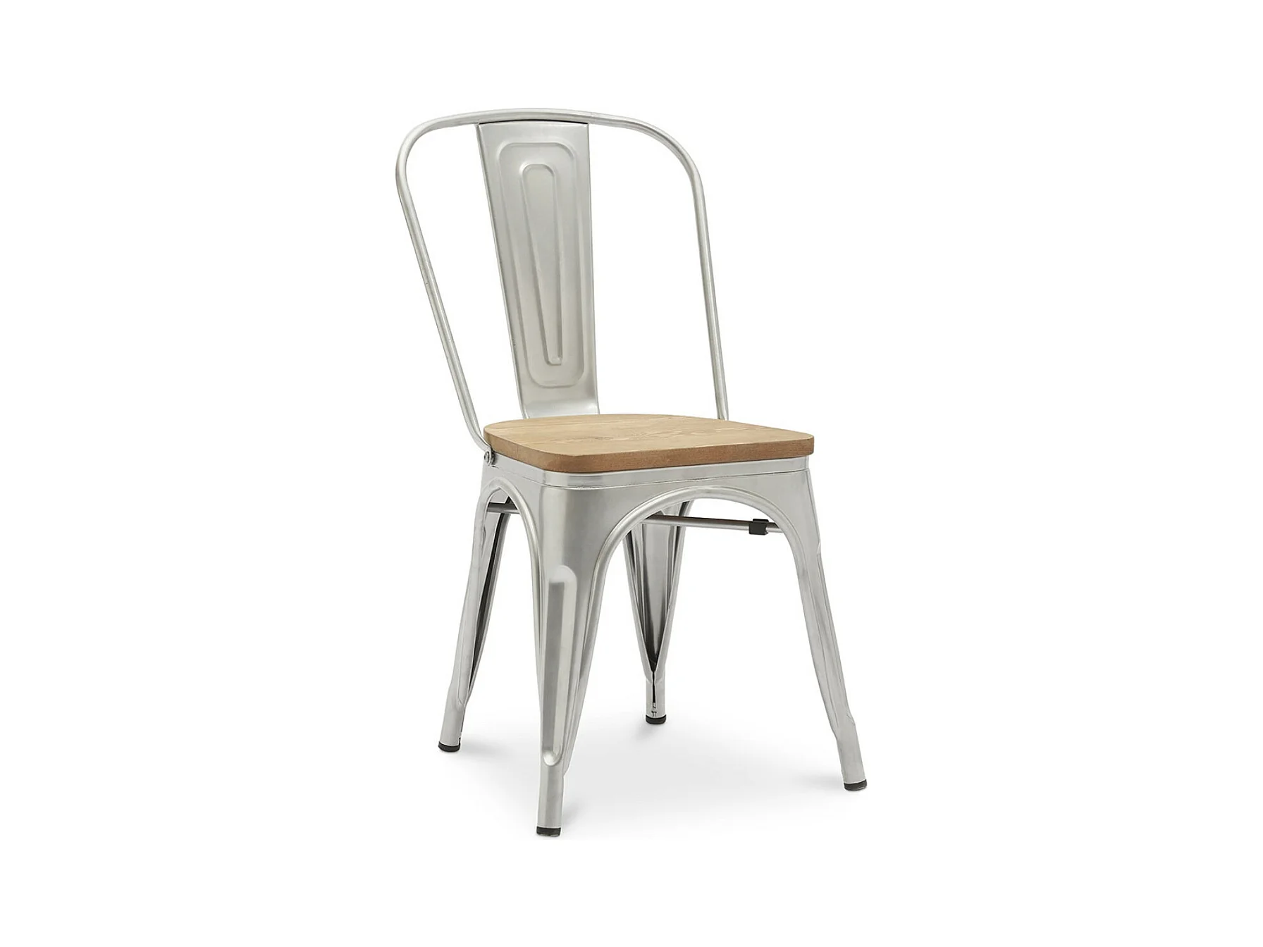 Industriële stoel van verouderd staal en zitting van natuurlijk massief hout Reko-Kleur Zilver staal