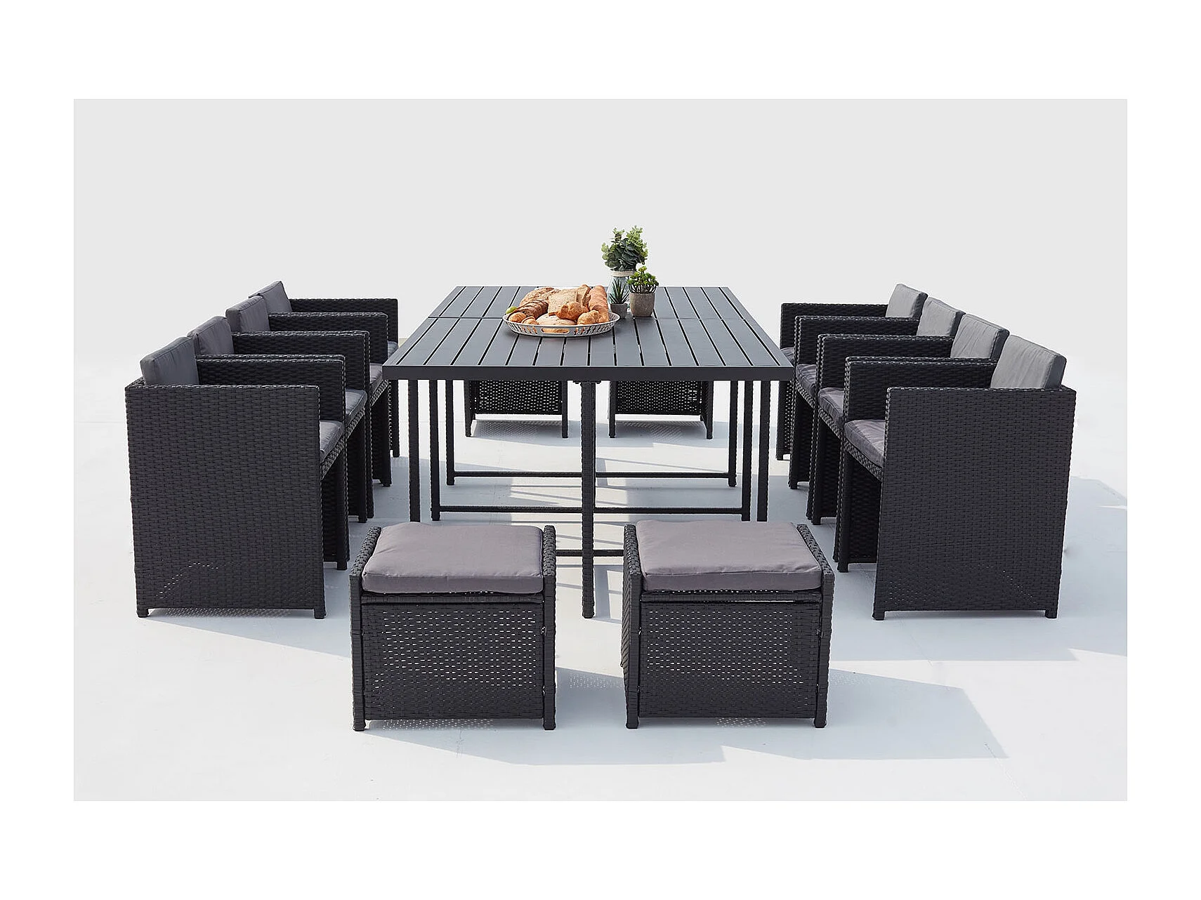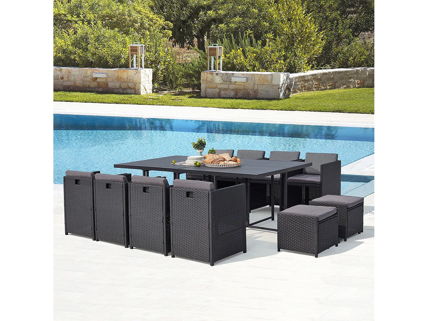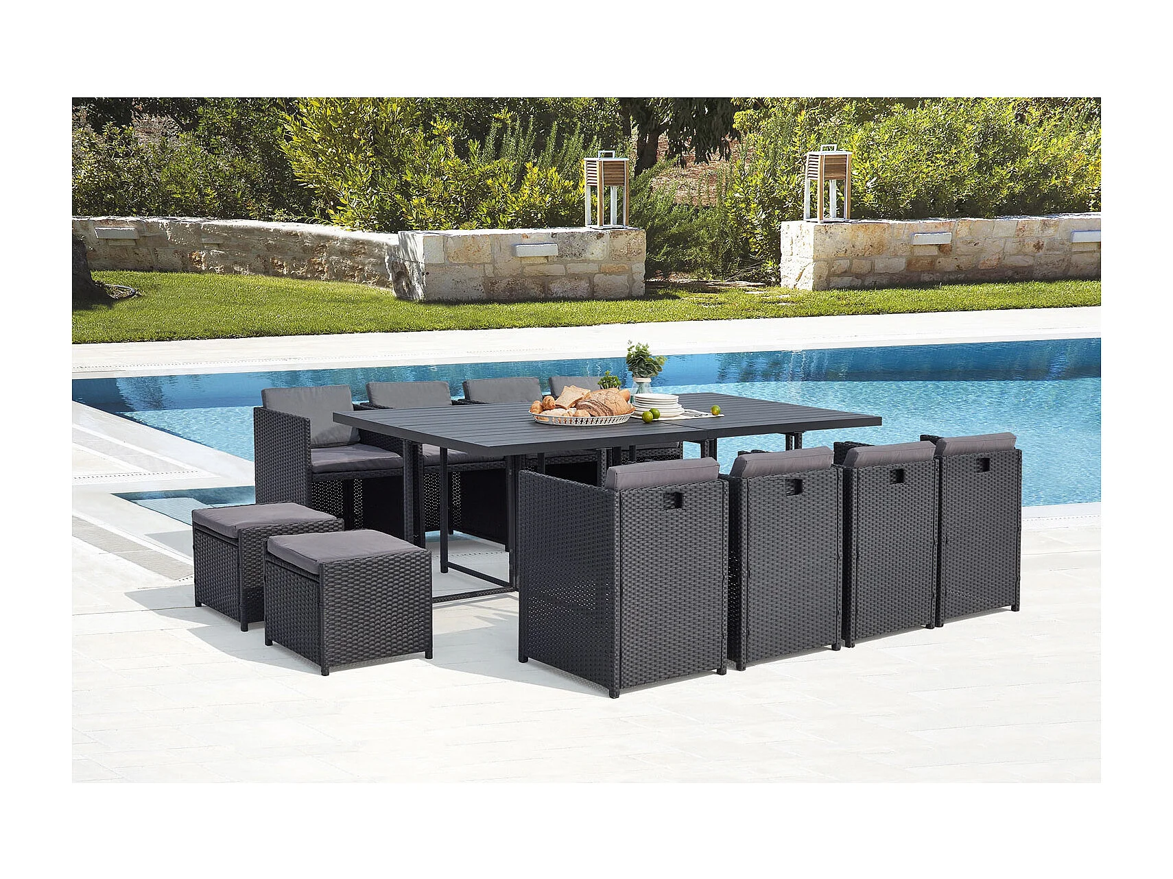 Inklapbare loungeset voor de tuin met 12 zitplaatsen van gevlochten kunststof en aluminium zwart/grijs SUNSET