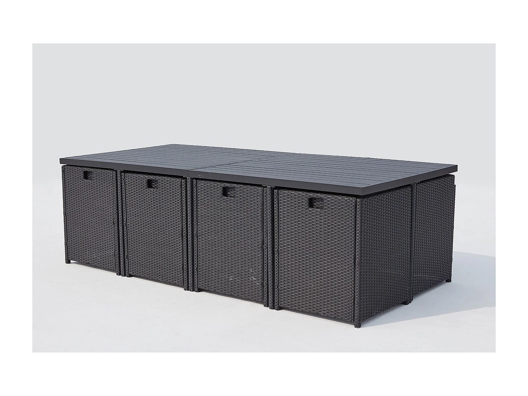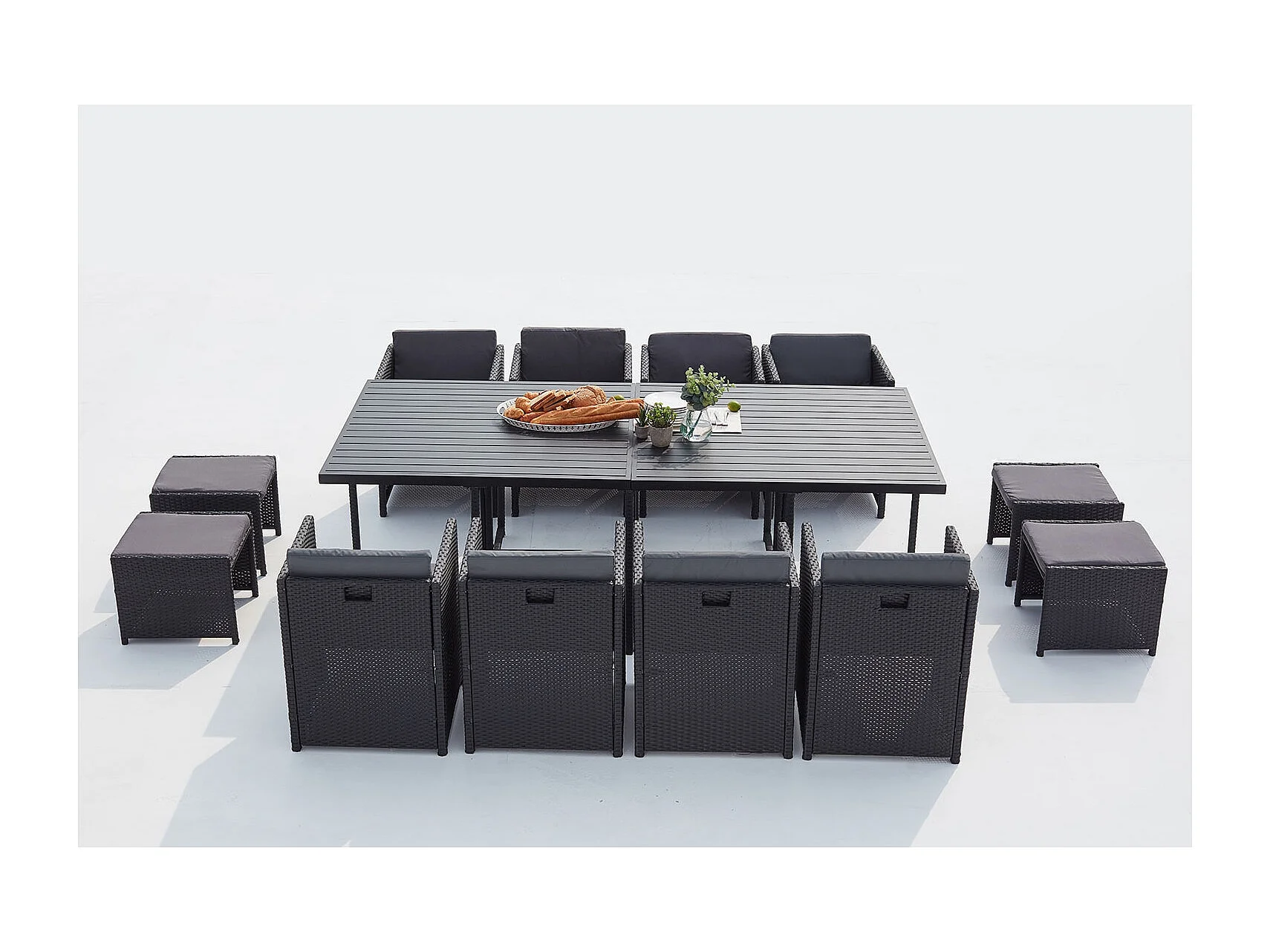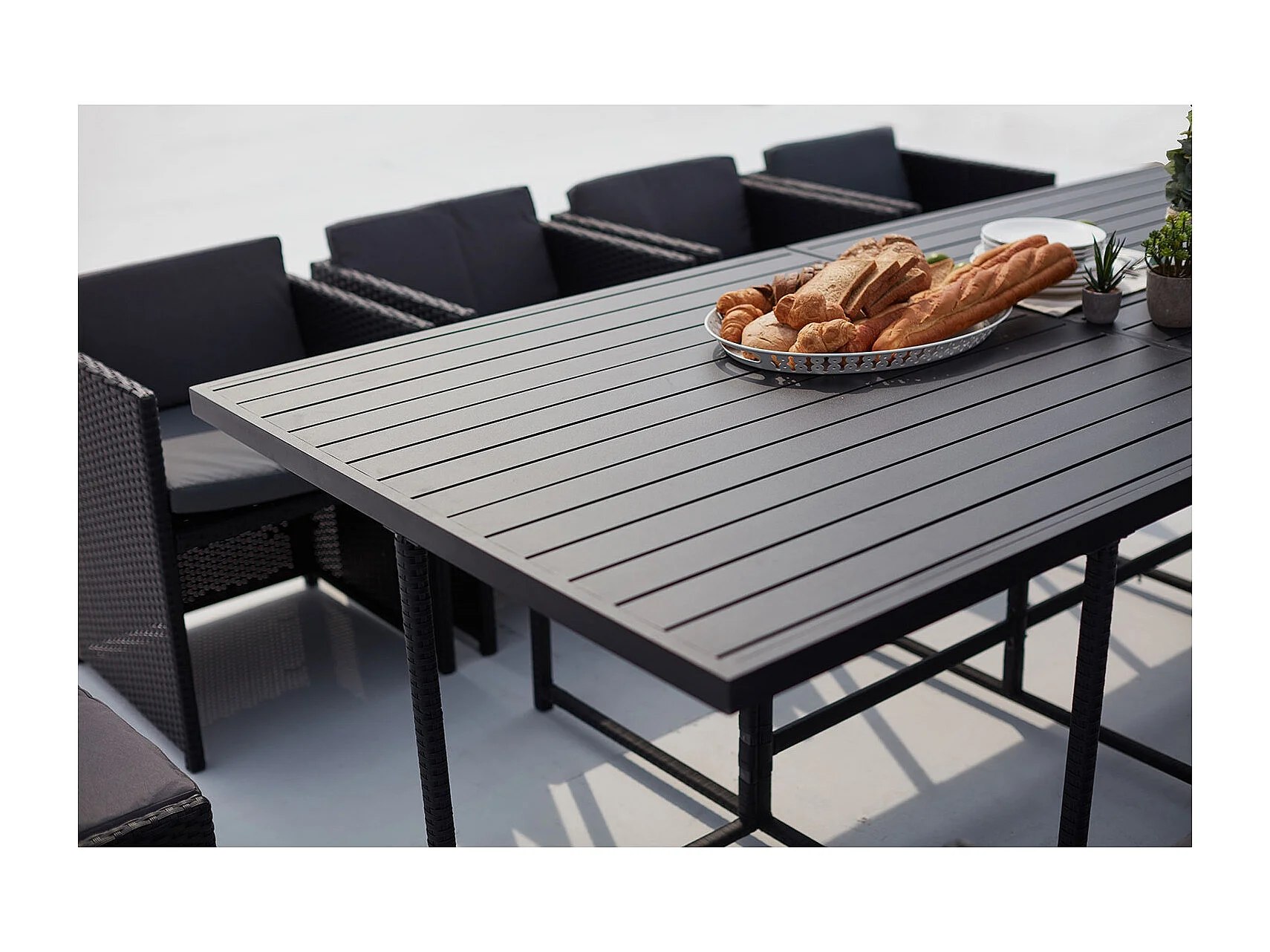Inklapbare loungeset voor de tuin met 12 zitplaatsen van gevlochten kunststof en aluminium zwart/grijs SUNSET
