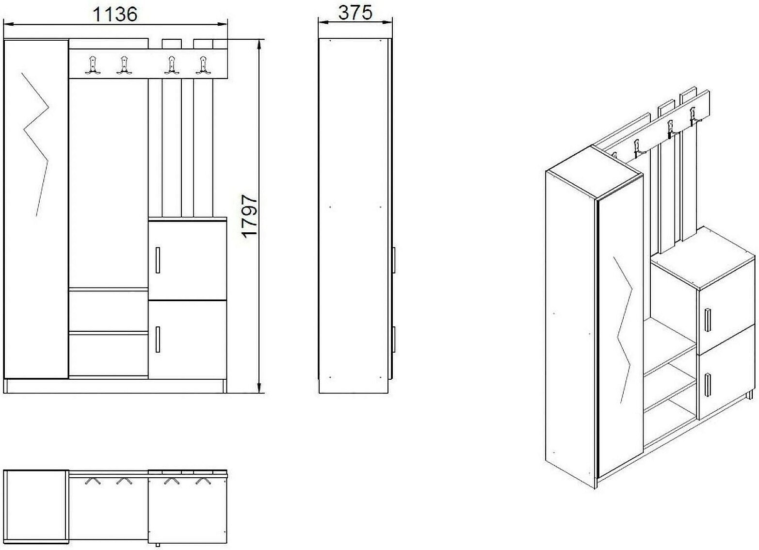 Dmarinell entreemeubilair, Kleerhanger entree, Foyer samenstelling, Multifunctionele opbergconsole, 36x36 h180 cm, Eiken