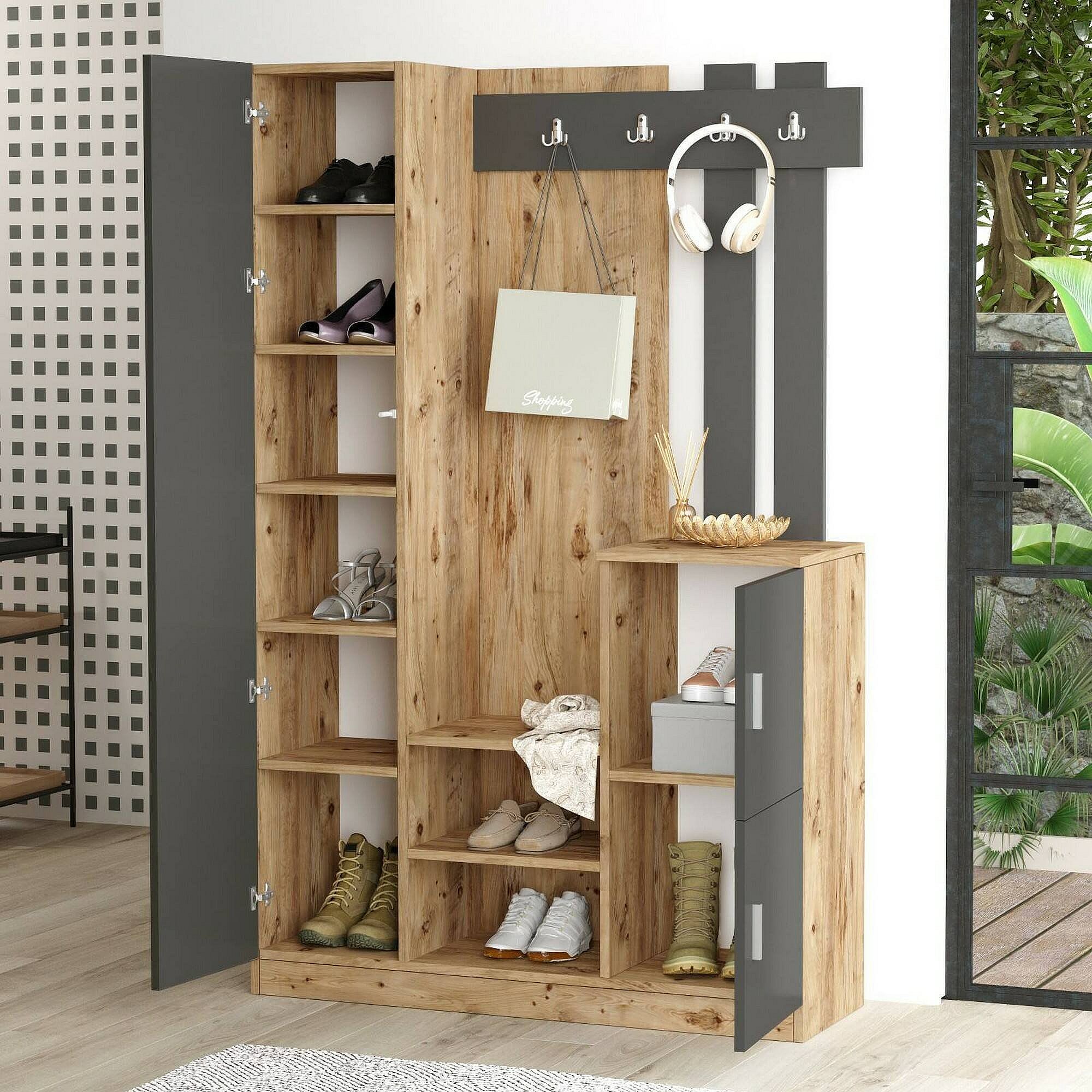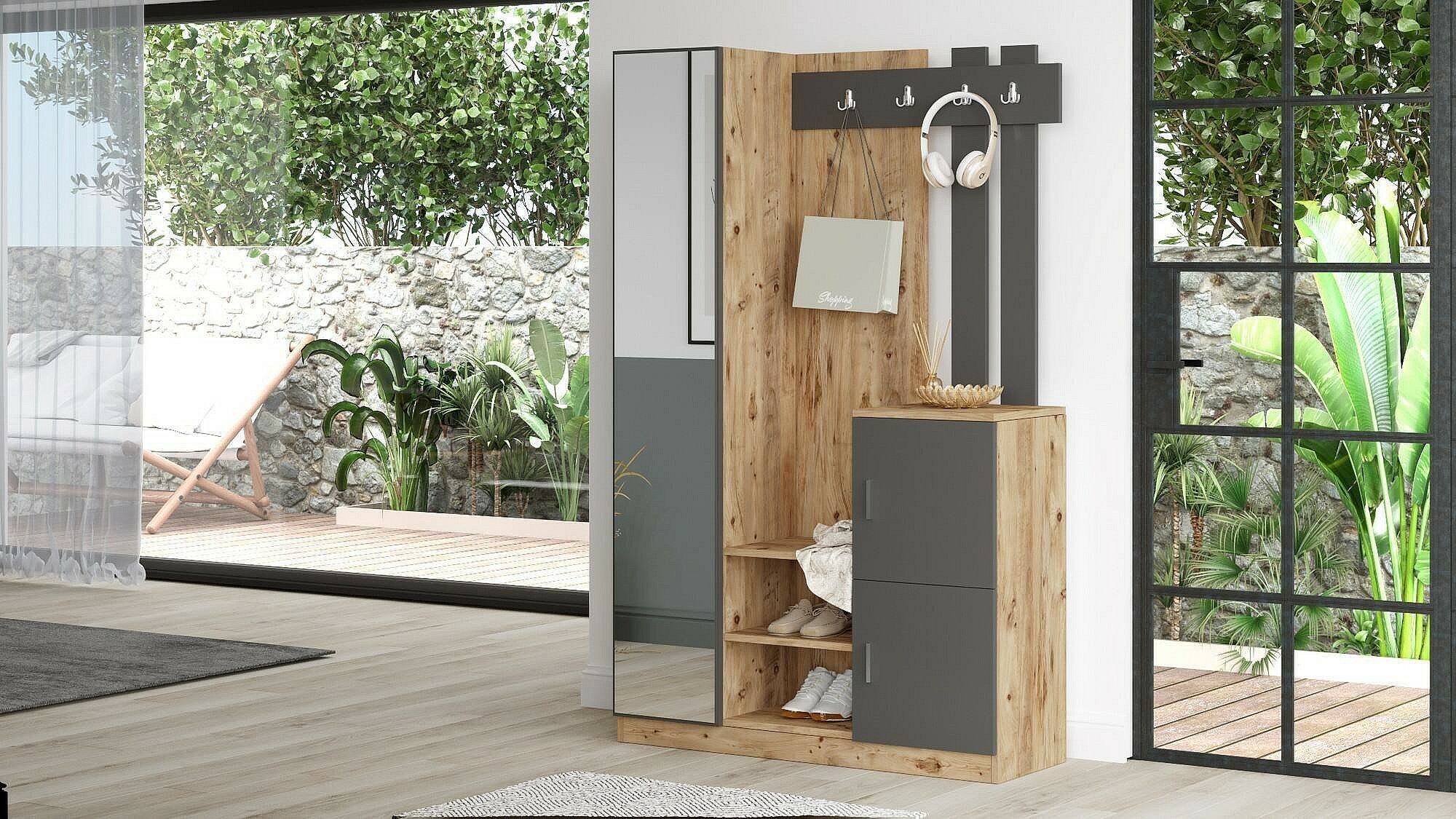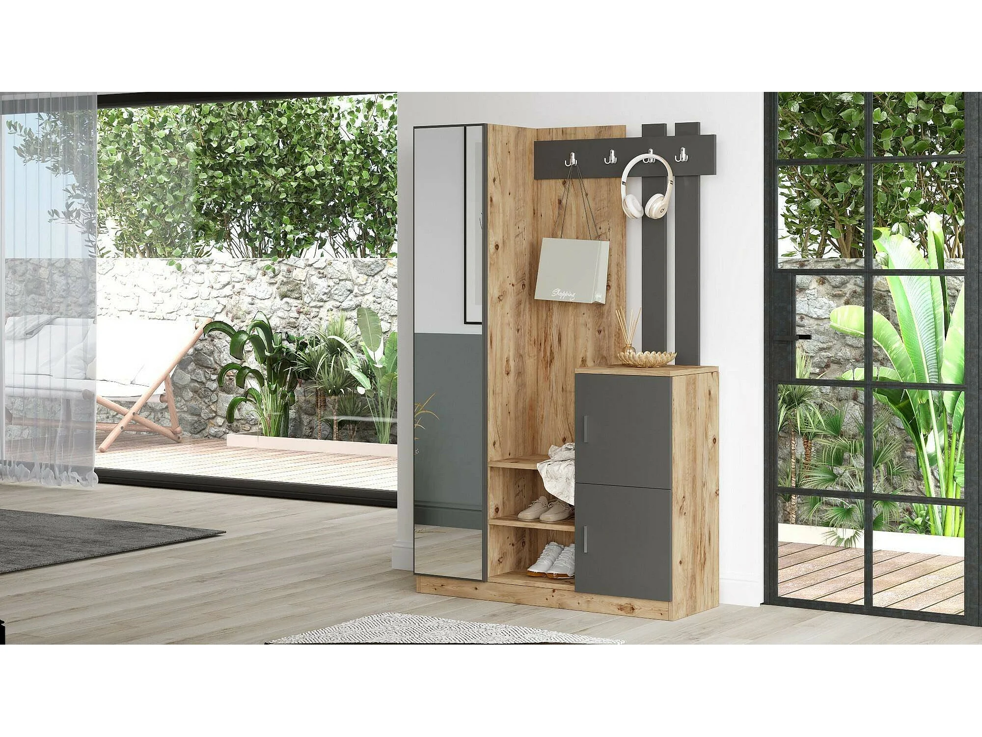 Inkommeubel Dgagn, Entreehanger, CompoAtriumhouder, muptfunctionele houder, 114x38h180 cm, Eik en antraciet