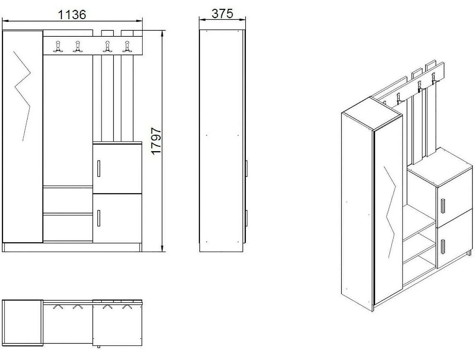 Dpontiss entreekast, Hanger ingang, Atrium samenstelling, Multifunctionele opbergconsole, 100x36h190 cm, Eiken en Veelkleurig