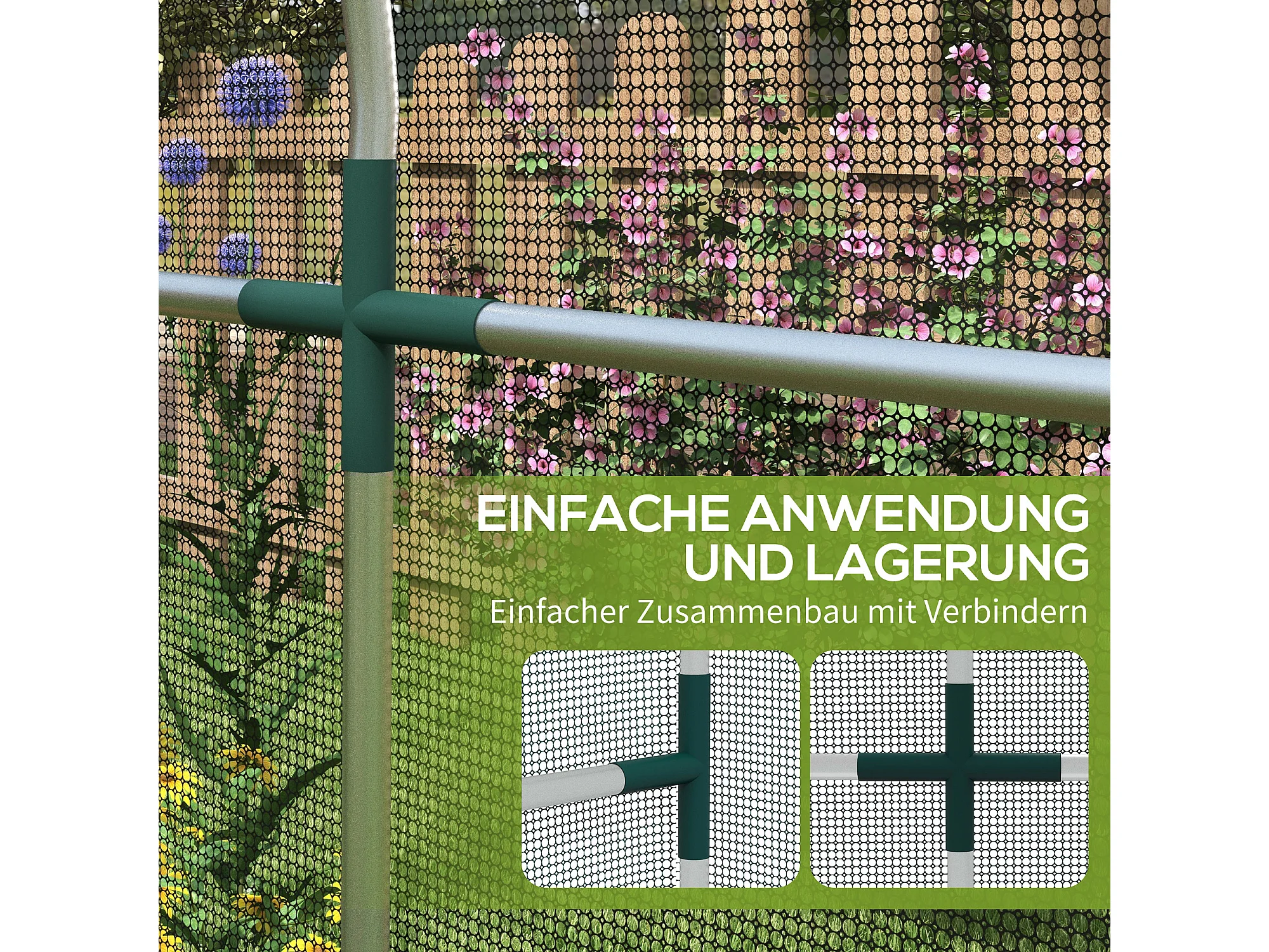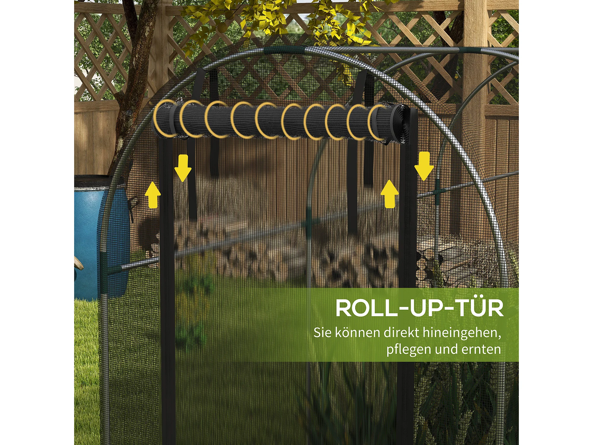 Insectennet met stalen frame, toegankelijke deur, zwart HDPE, plantenbescherming (120x360x188cm)