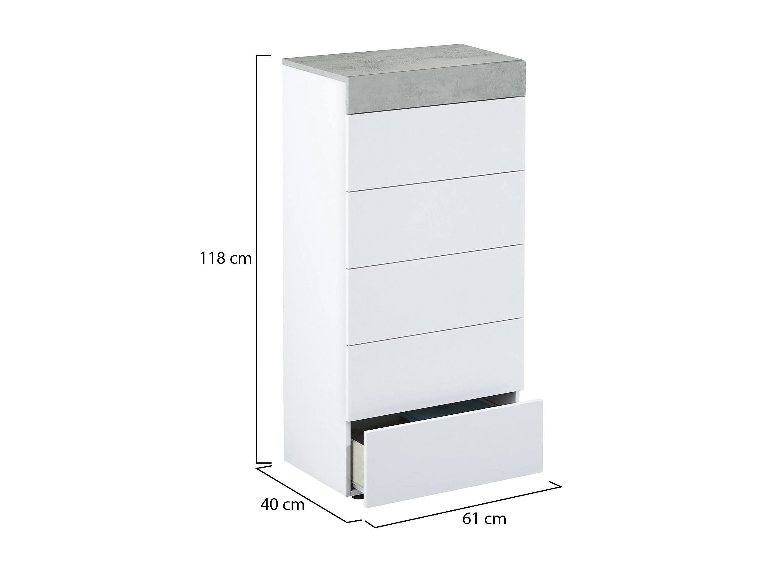 Dmora Ladenkast Irving Wit 40x61x118h cm, 5 Laden, Glijdende Opening en Sluiting