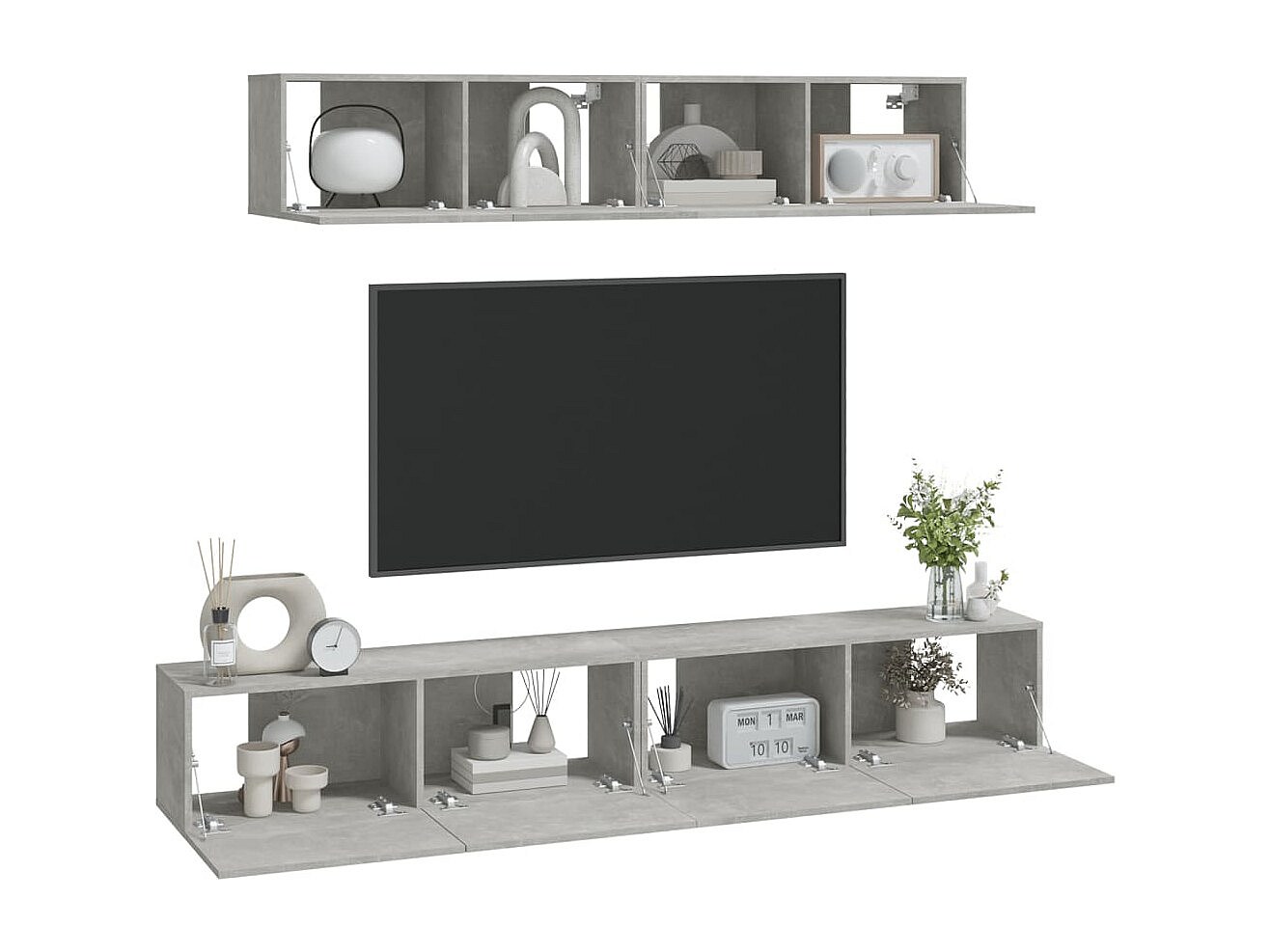 Isandro 4-delige Tv-meubelset bewerkt hout betongrijs