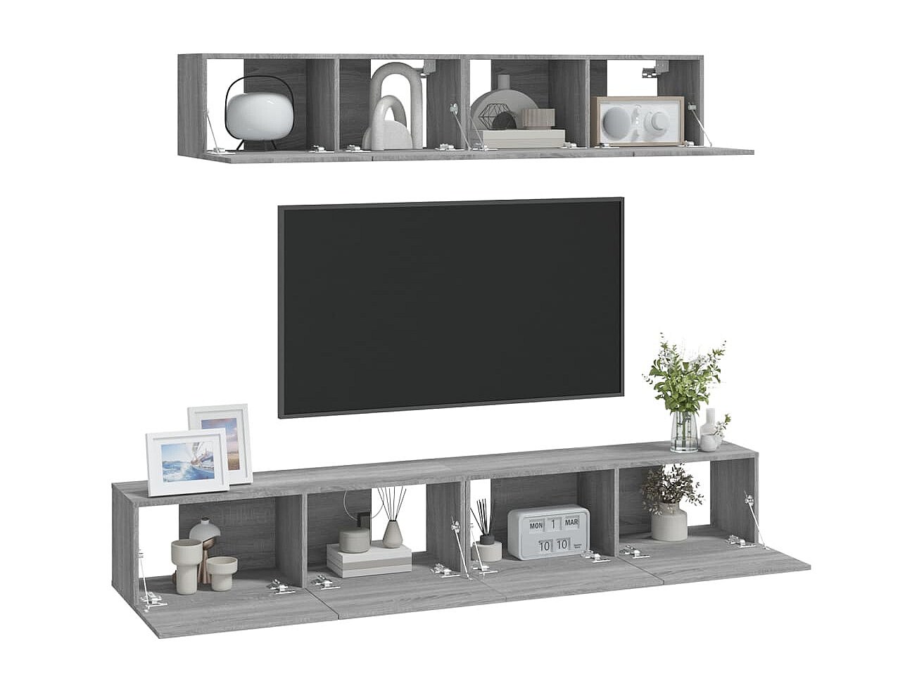 Isandro 4-delige Tv-meubelset bewerkt hout grijs sonoma eikenkleurig