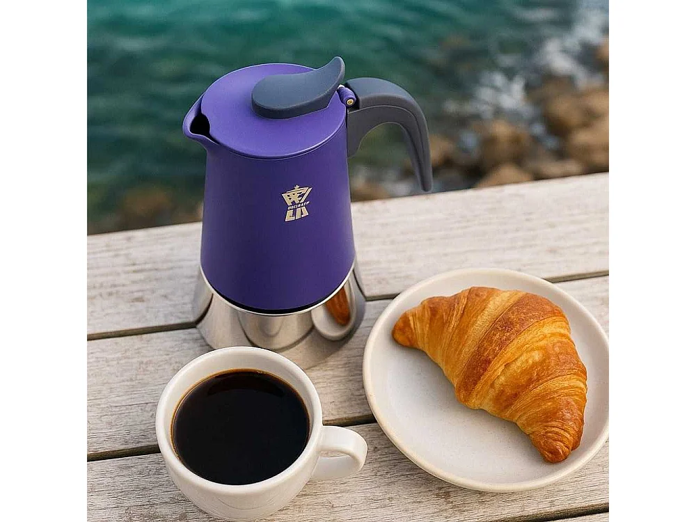Italiaanse Koffiezetter Pezzetti Steelexpress 4 kopjes Roestvrij Staal Indigo Blauw Voor alle Vuurtypes, inclusief Inductie