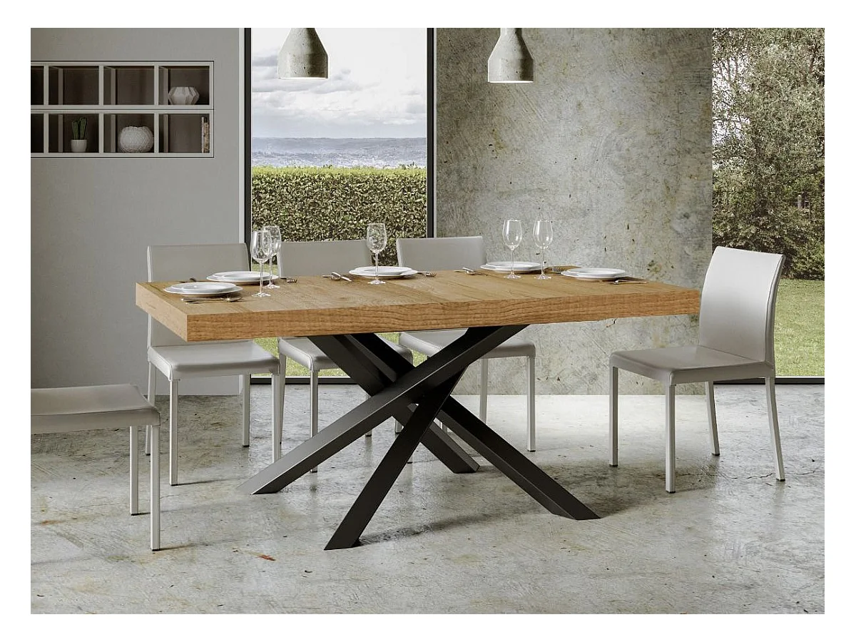 Italiaanse licht eiken tafel en donkergrijs in elkaar verweven poten 180 cm Artemis