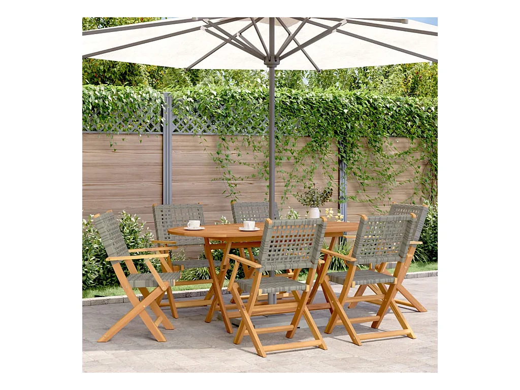 Jacques-Paul-Francis 7-delige Tuinset poly rattan en massief hout grijs