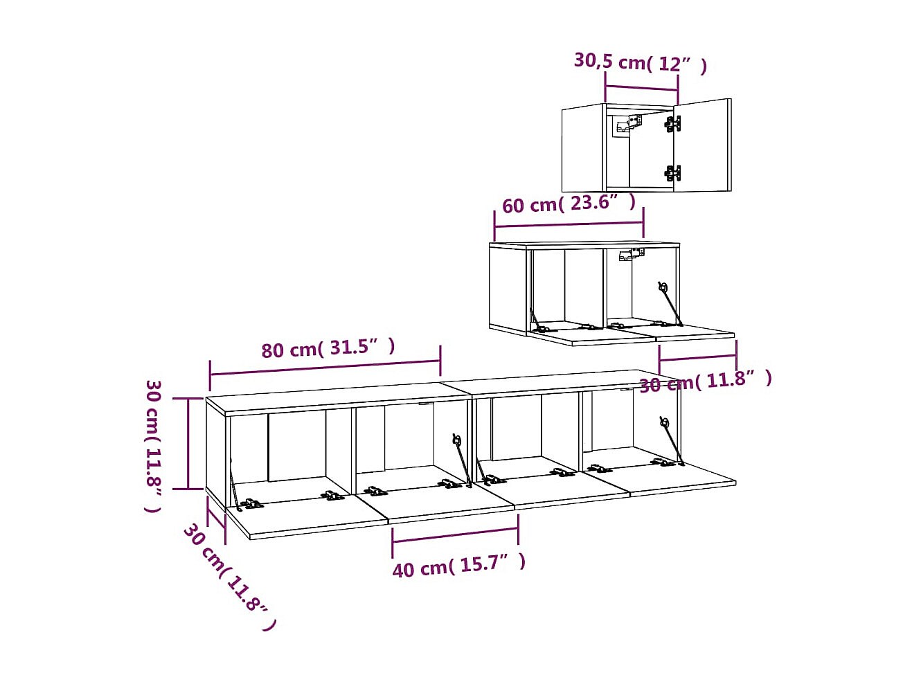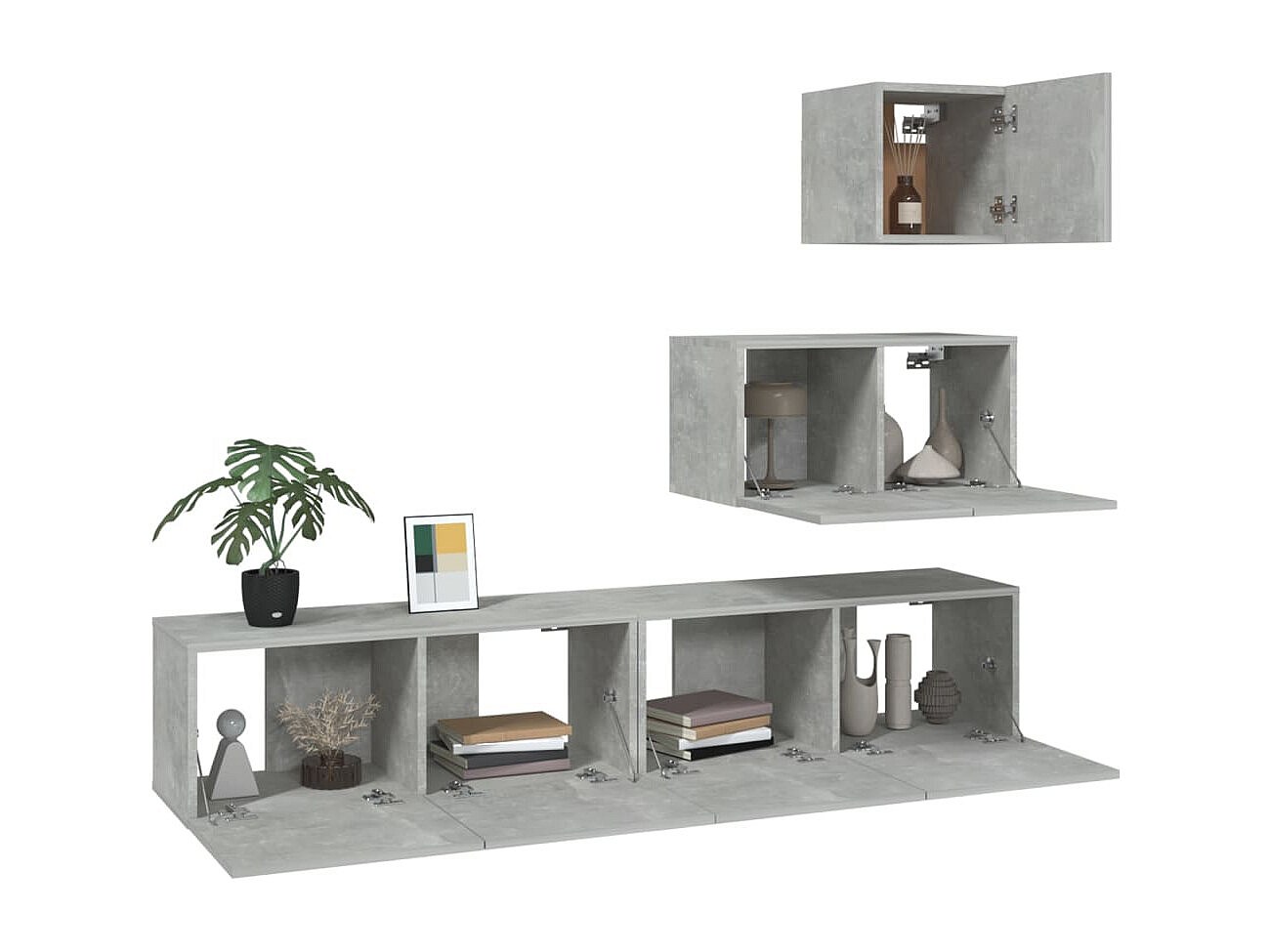 Jean-Louis 4-delige Tv-meubelset bewerkt hout betongrijs