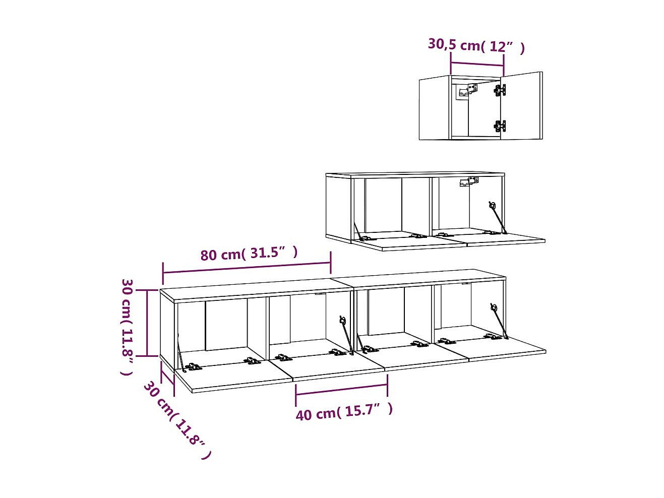 Jean-Louis 4-delige Tv-meubelset bewerkt hout grijs sonoma eikenkleurig