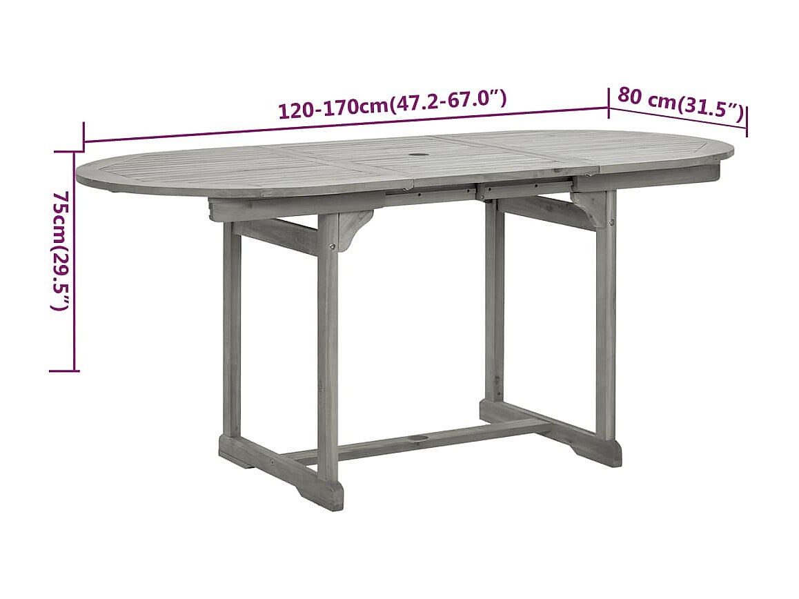 Dylrik 5-delige tuinset (150-200)x100cm massief acaciahout grijs