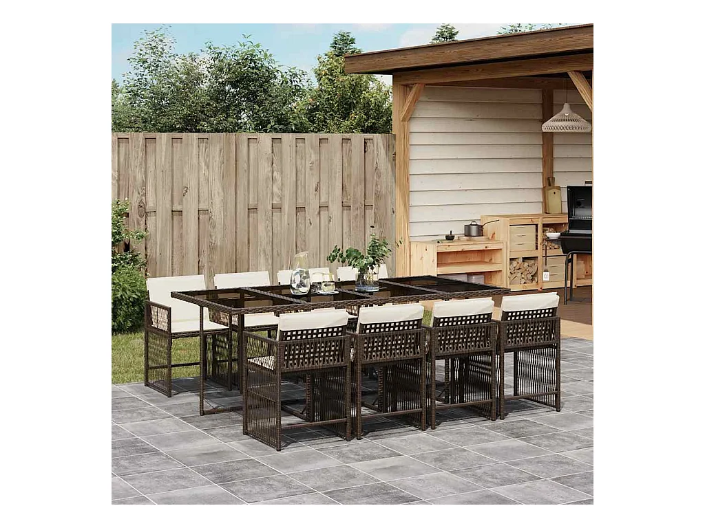 Jeffersontown 9-delige Tuinset met kussens poly rattan bruin
