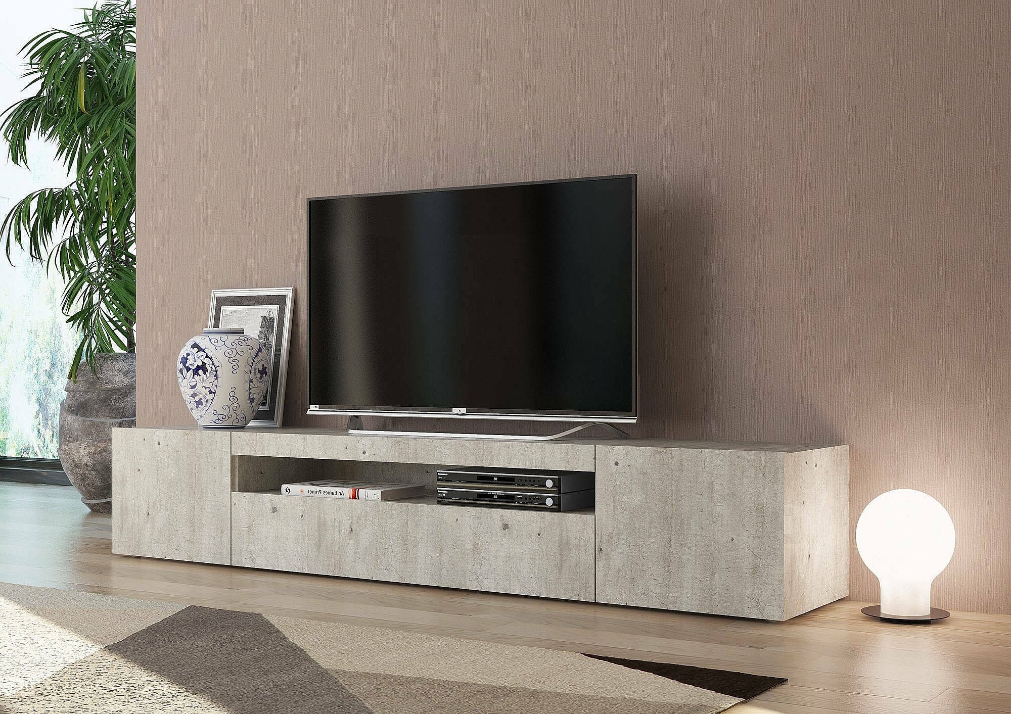 Jesse TV-meubel, Laag woonkamerdressoir met 3 deuren, Televisiestandaard, 100% Made in Italy, 200x40h37 cm, Cement