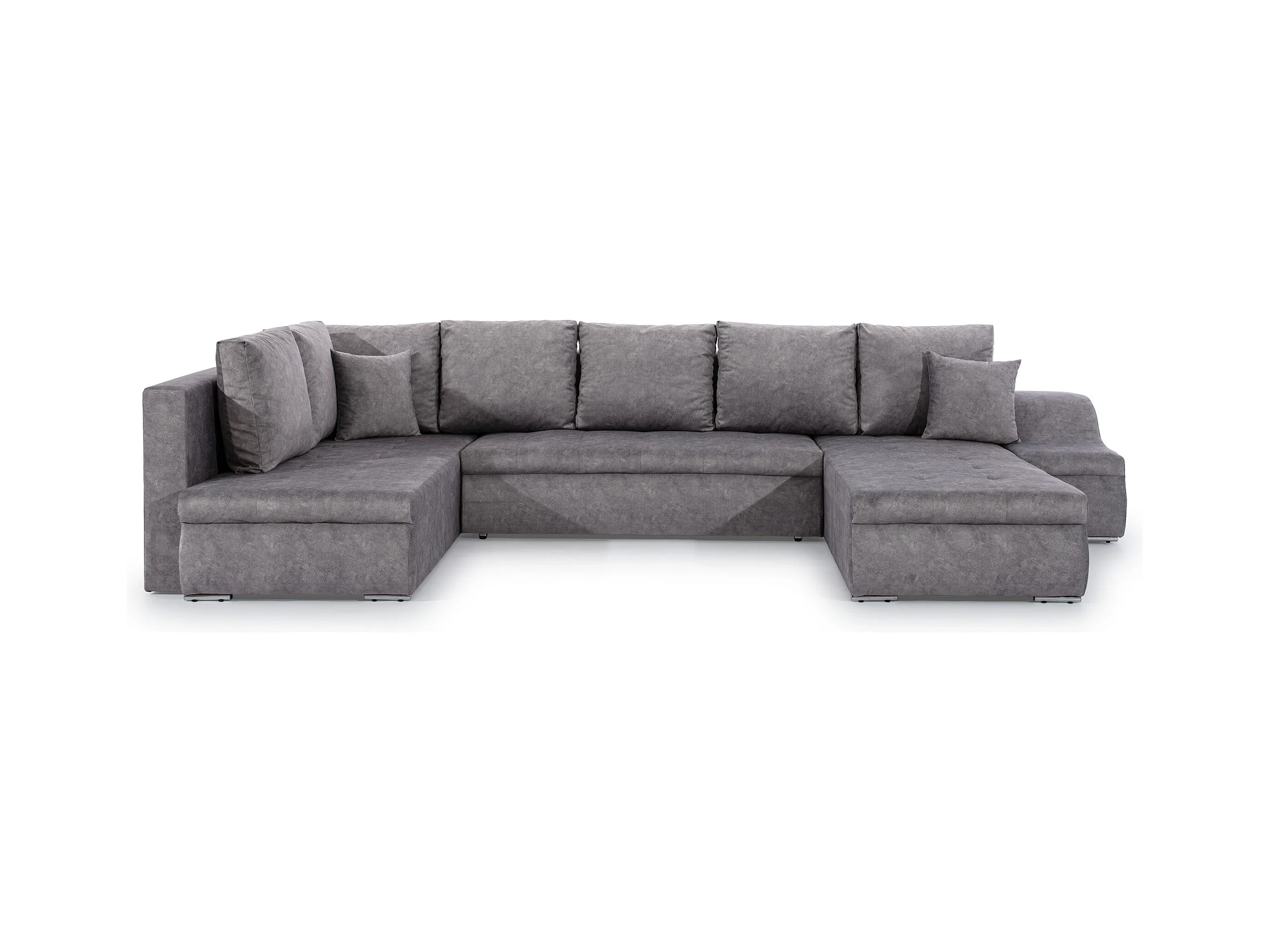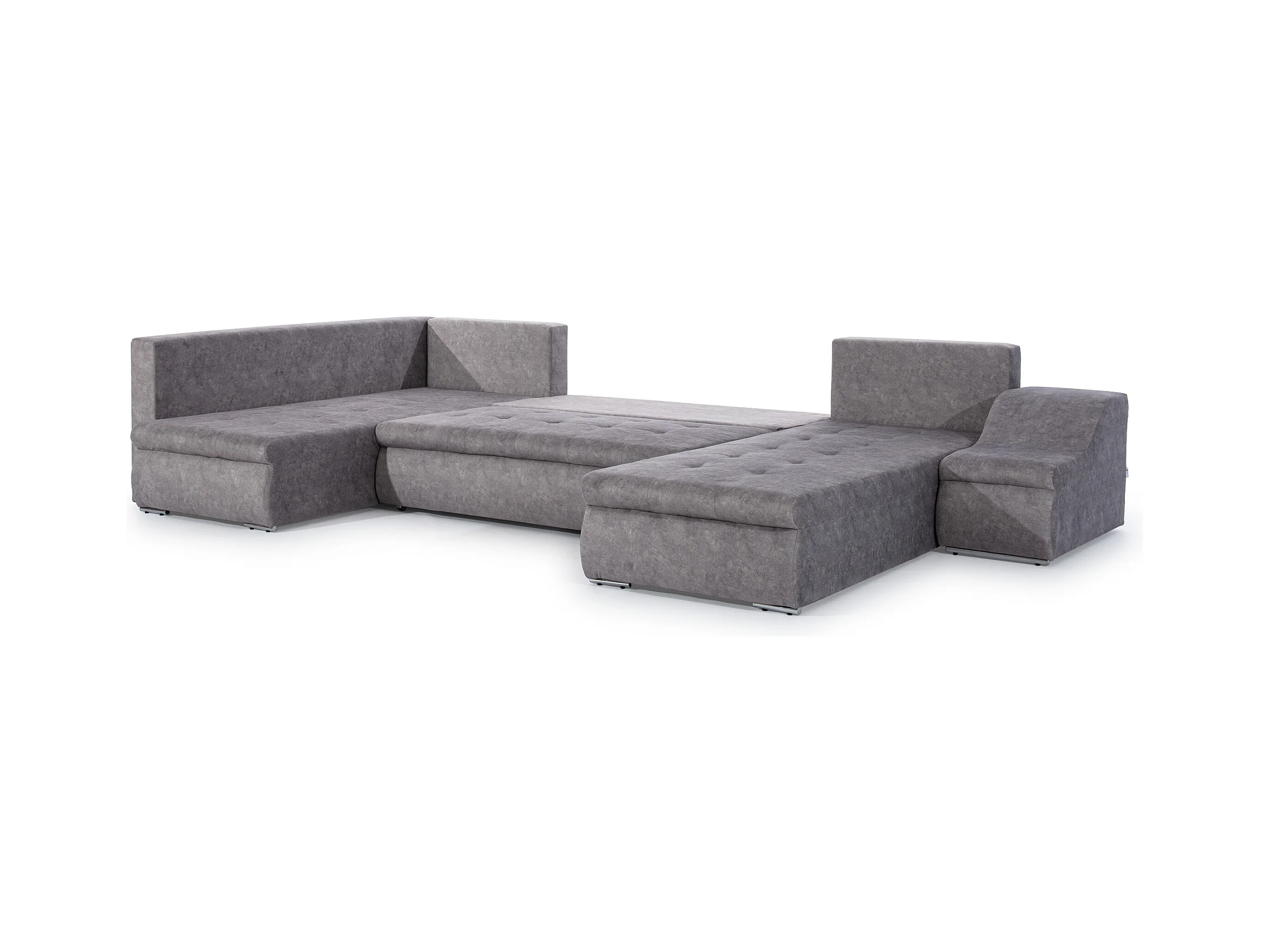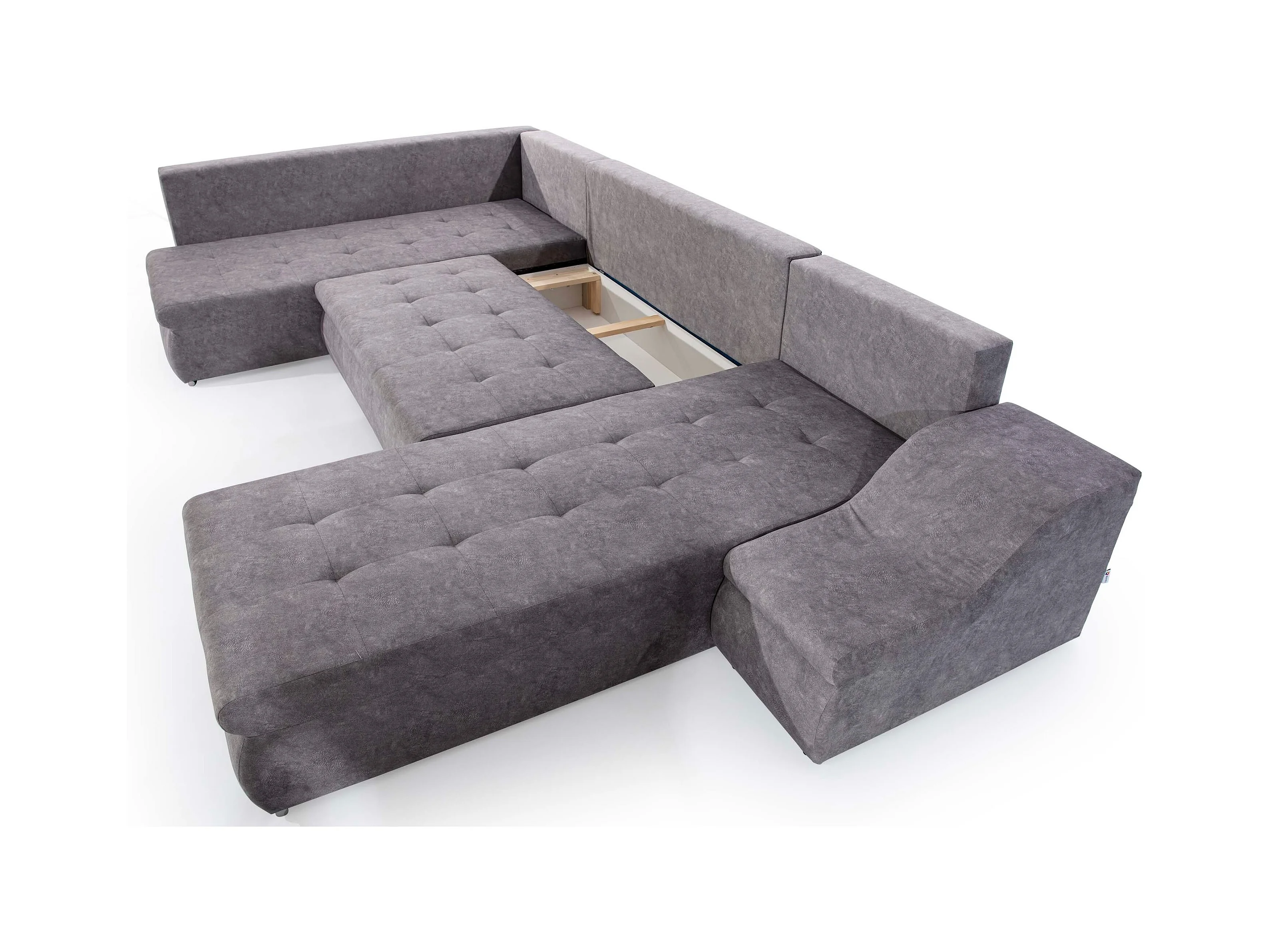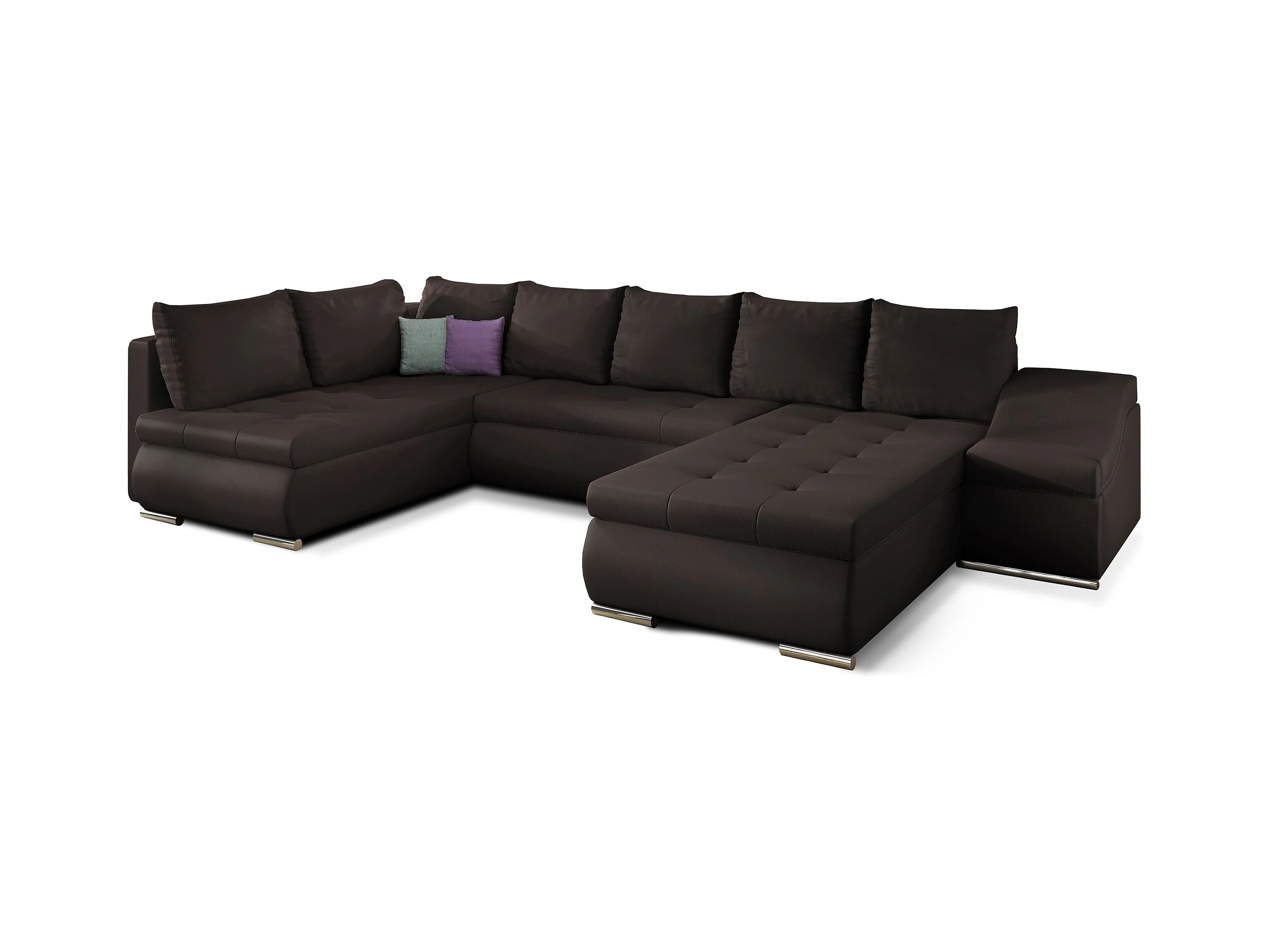 Bruin fluwelen panoramische slaapbank met Triano opbergbox 342 cm-Opslagruimte naar rechts
