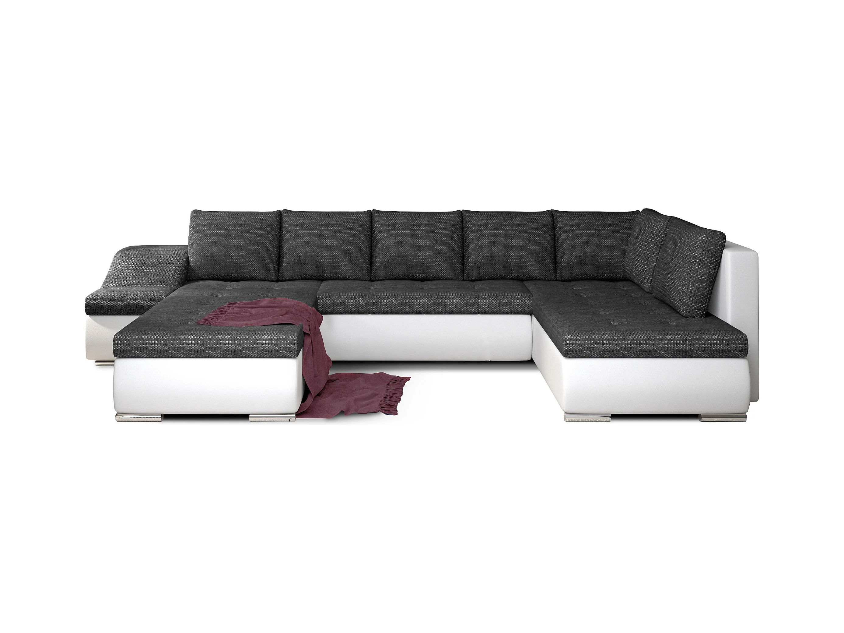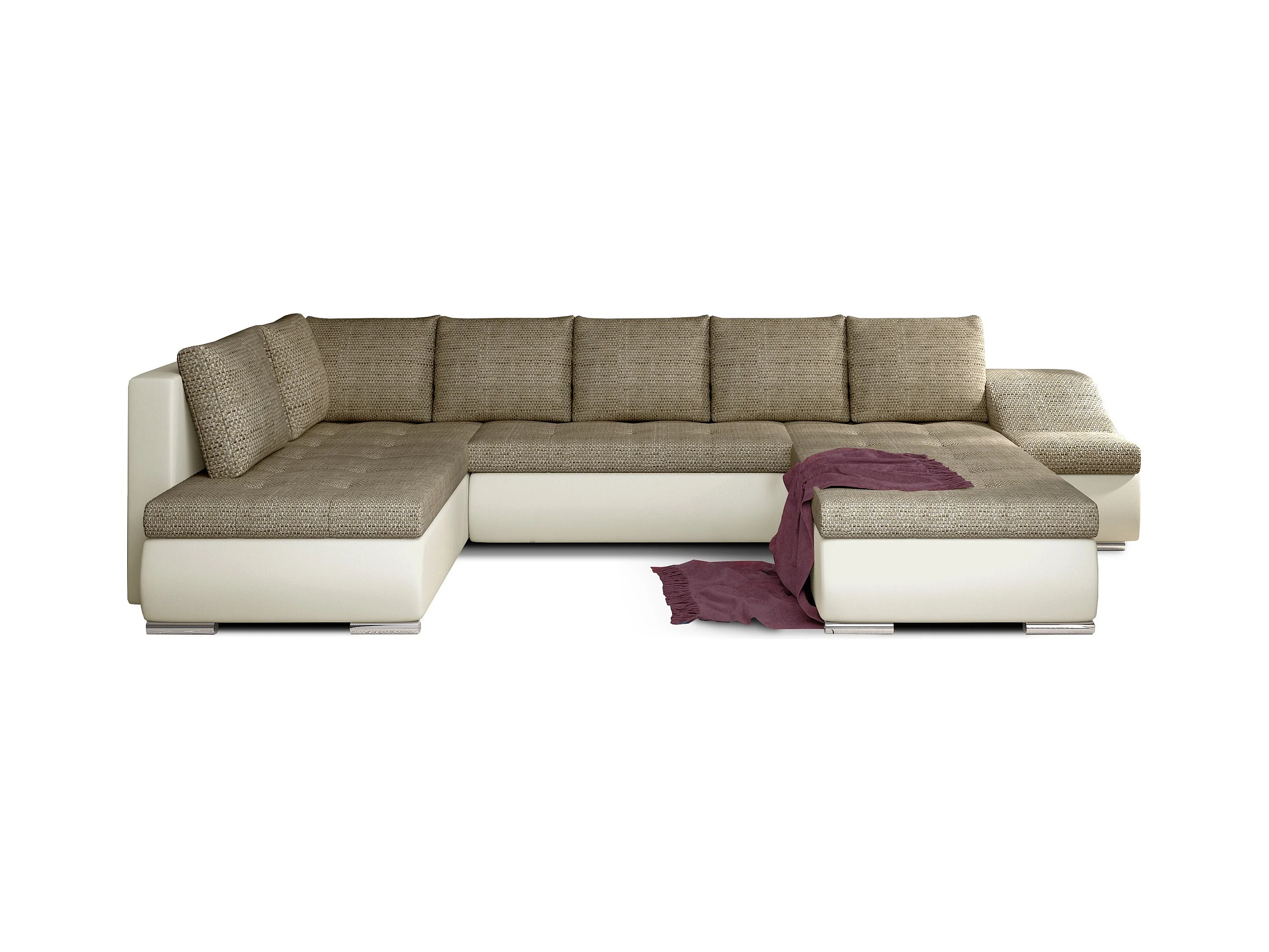 LEVANO Panoramische slaapbank in stof en kunstleer, hoofdsteunen-Kleur Lichtbeige/gemêleerd beige-Opslagruimte naar links