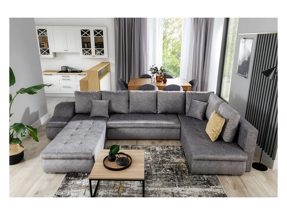 JONAZ panoramische stoffen slaapbank - Geïntegreerde opbergruimte-Kleur -Dagbed Naar links