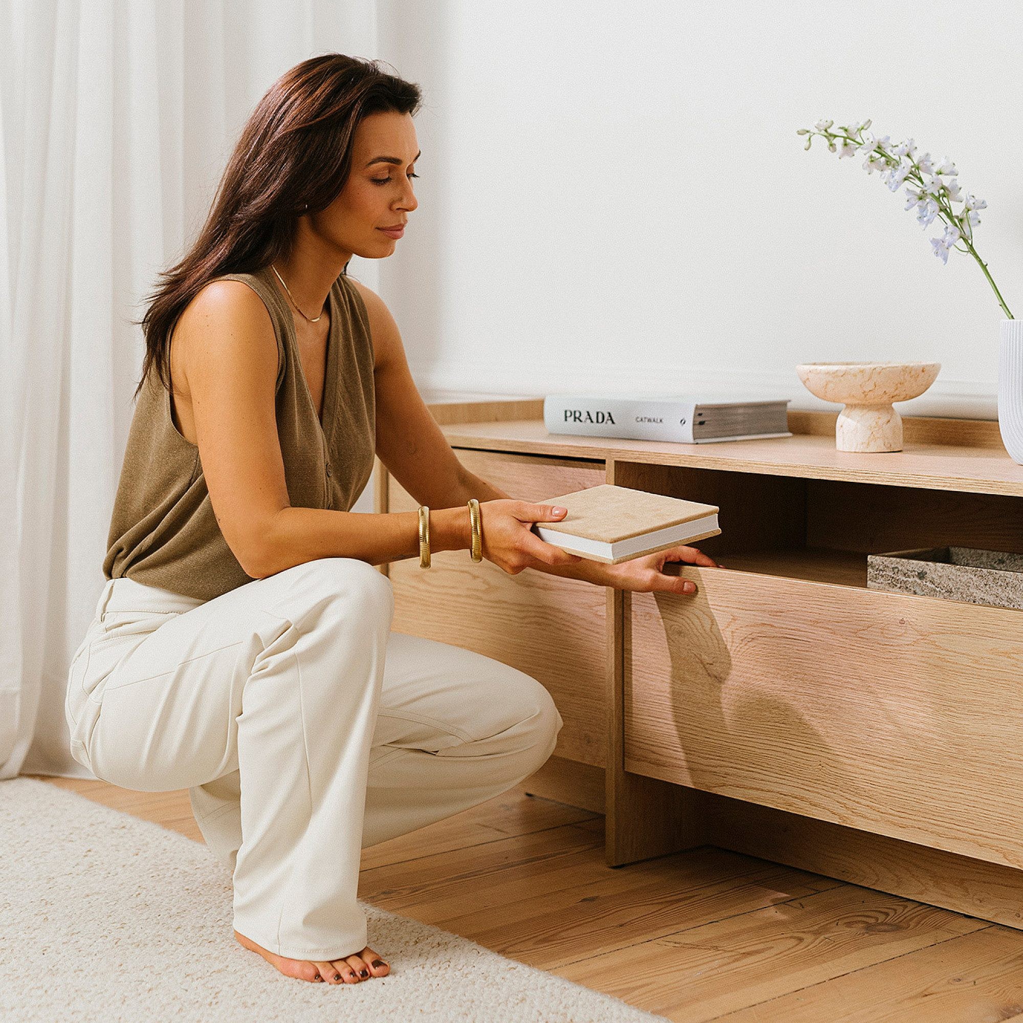Handgemaakte eikenhouten tv-kast 150 x 30 x 44,5 cm Technisch hout