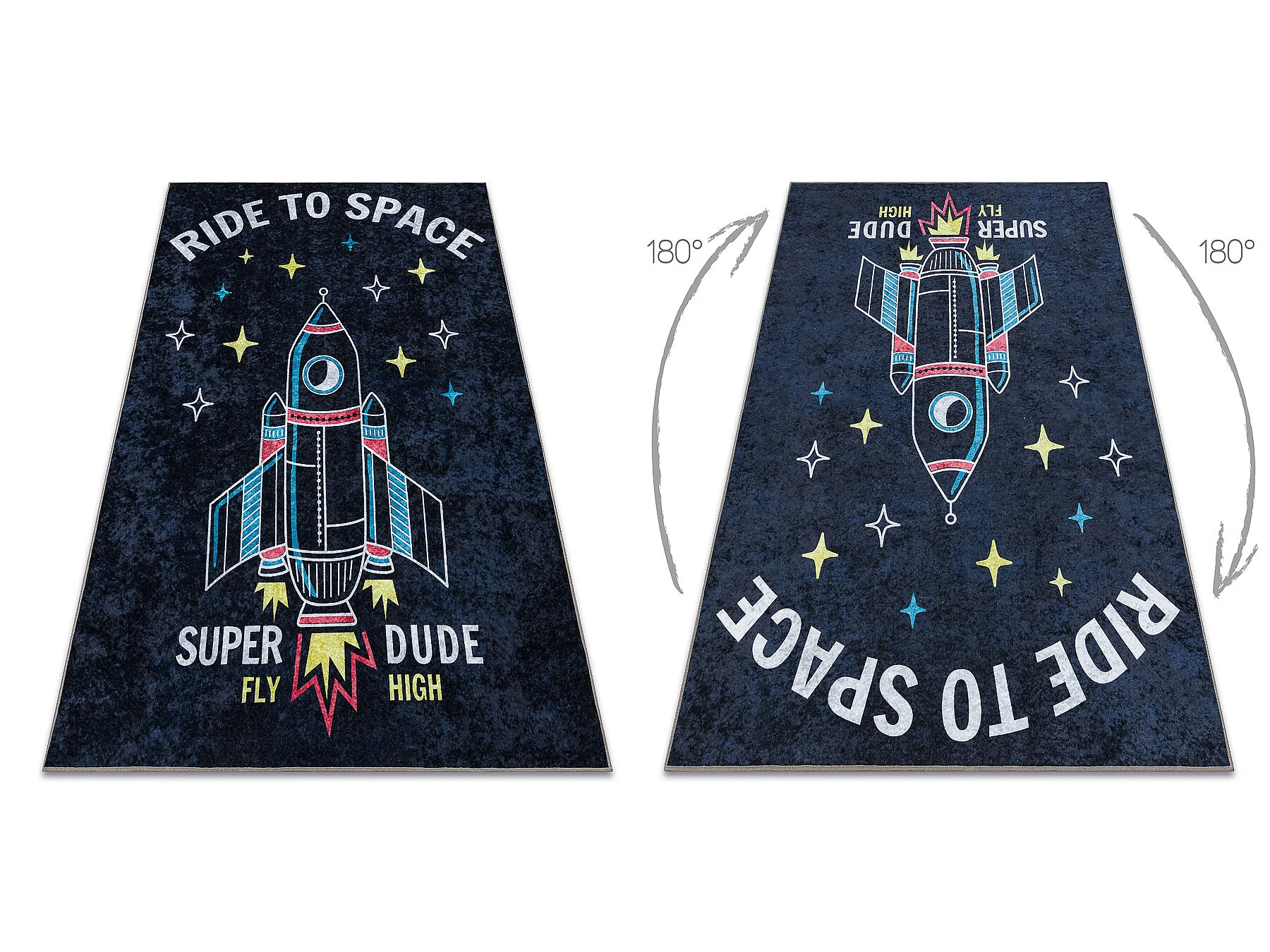 JUNIOR 52069.801 tapijt wasbaar Ruimte raket voor kinderen antislip - 140x190 cm