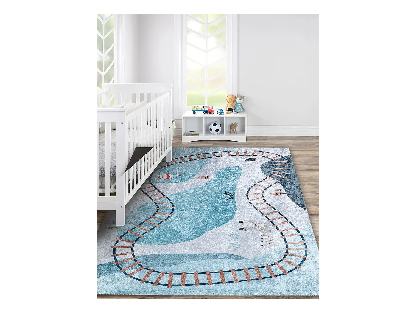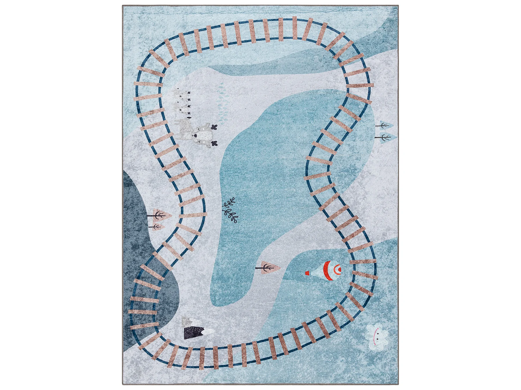JUNIOR 52243.801 tapijt wasbaar Trein rails voor kinderen antislip - b 140x190 cm