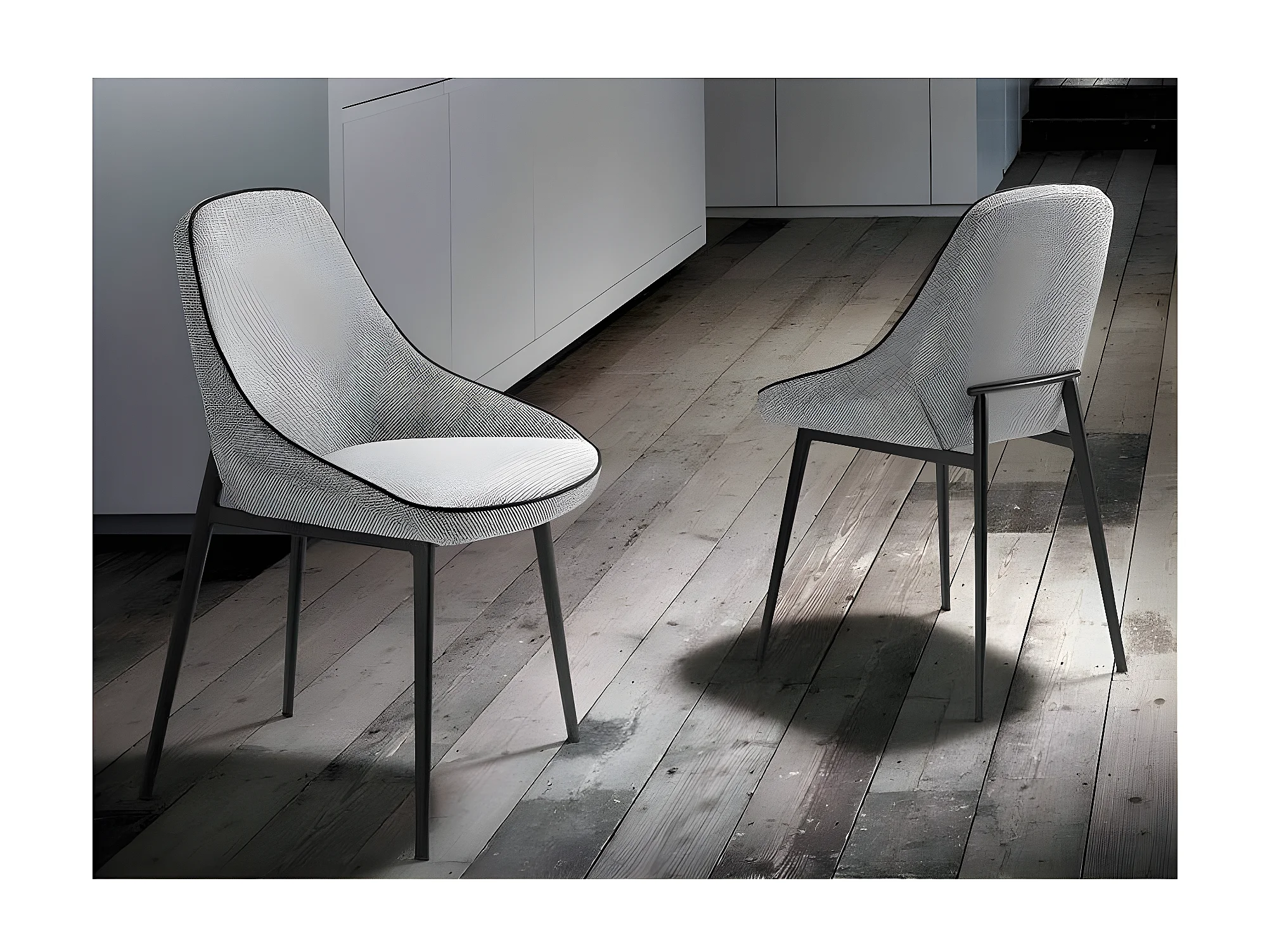 Kabesa grijze stoffen stoel en zwart stalen poten - Set van 2-Kleur DUO 14